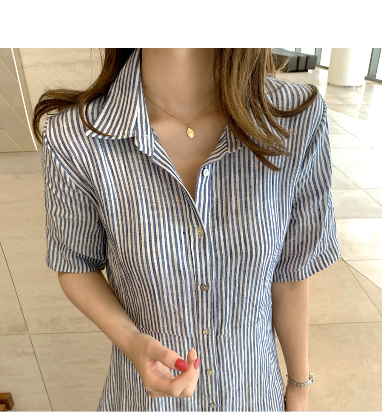 ワンピース シャツワンピース シャツワンピ ロング丈 ストライプ ママコーデ 夏 デート お出かけ MH2168