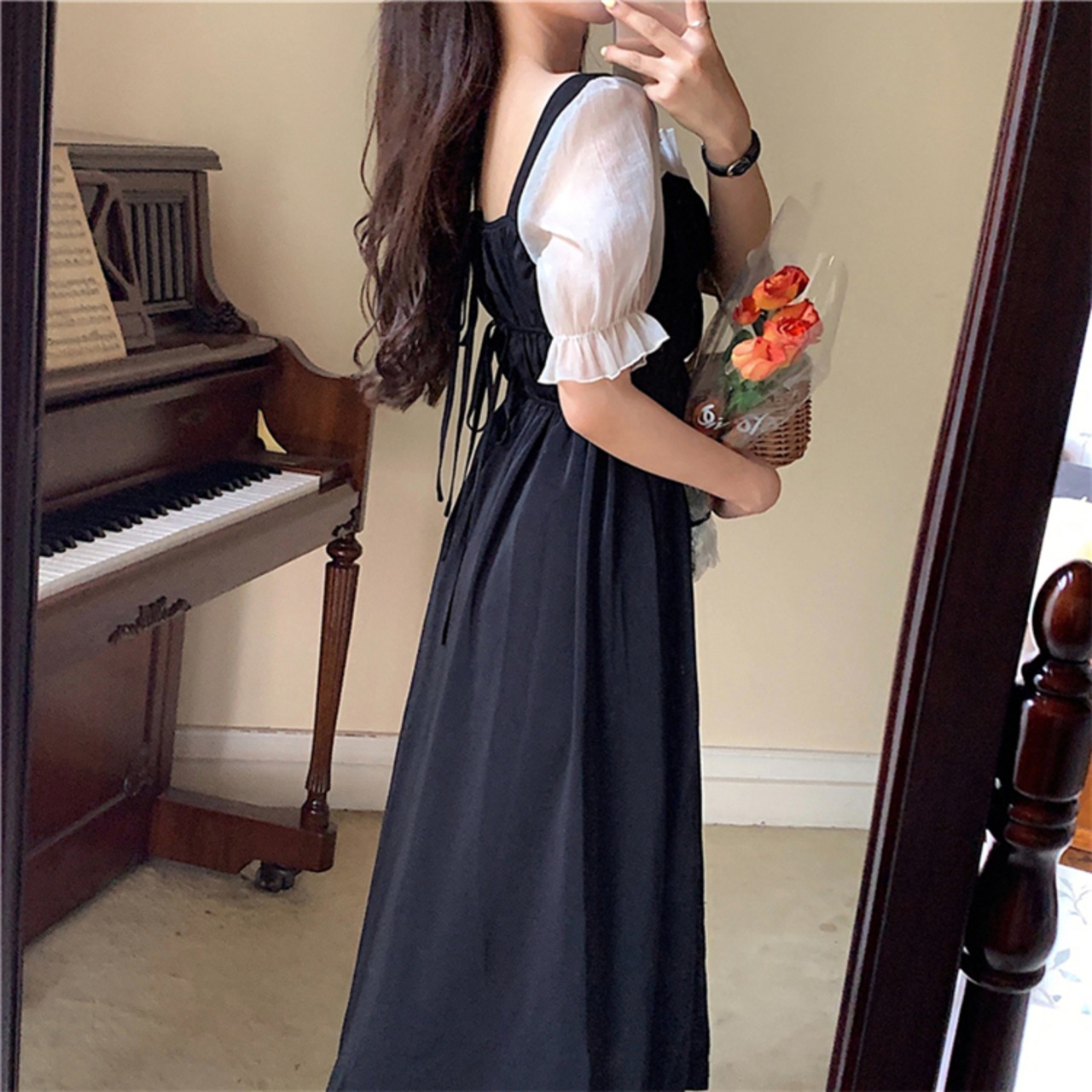 ワンピース ミモレ丈 重ね着風 ドッキングワンピース ガーリー 可愛い デート お出かけ MH2179