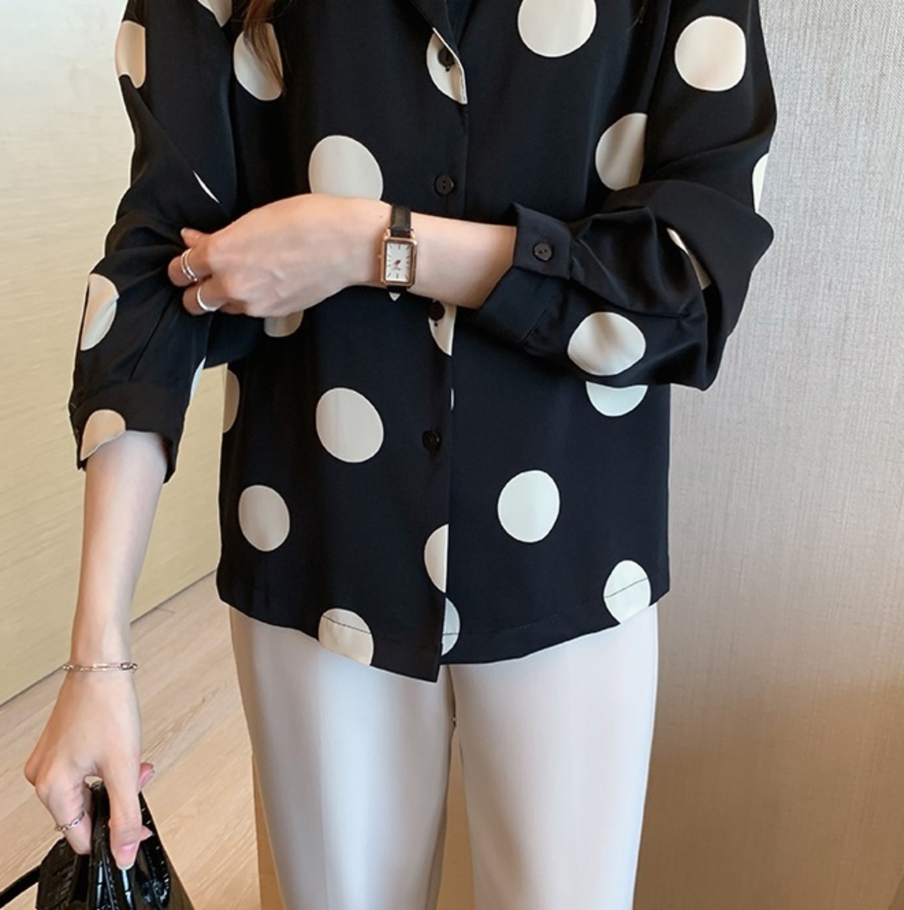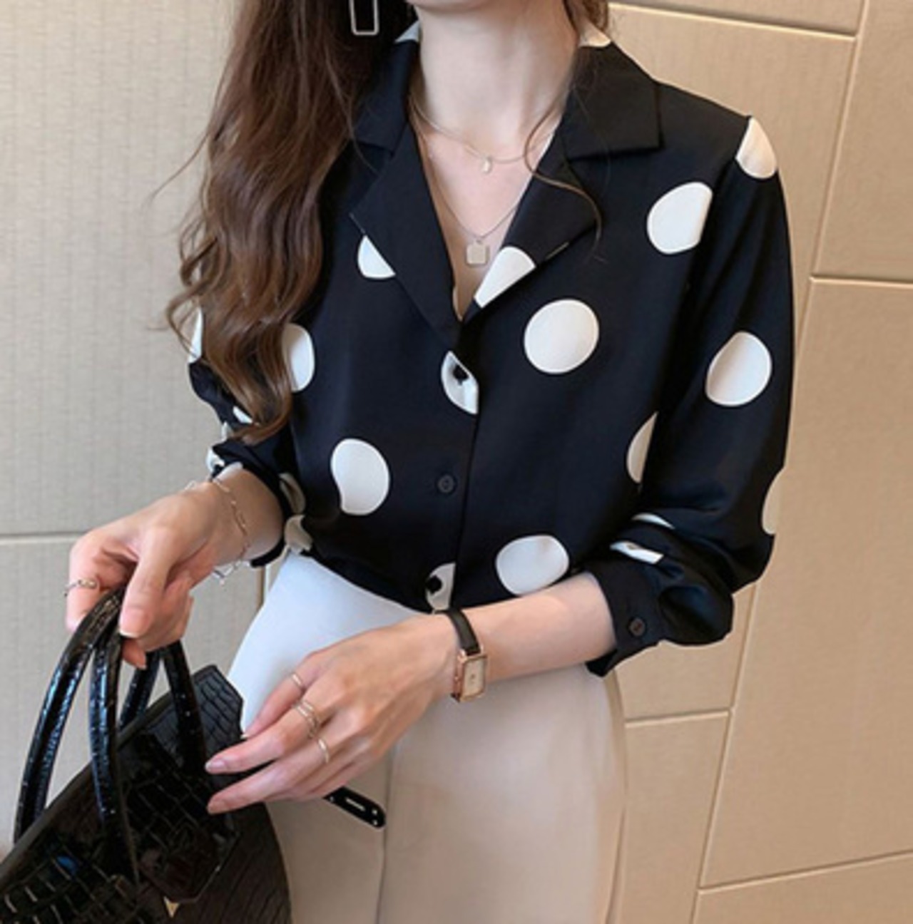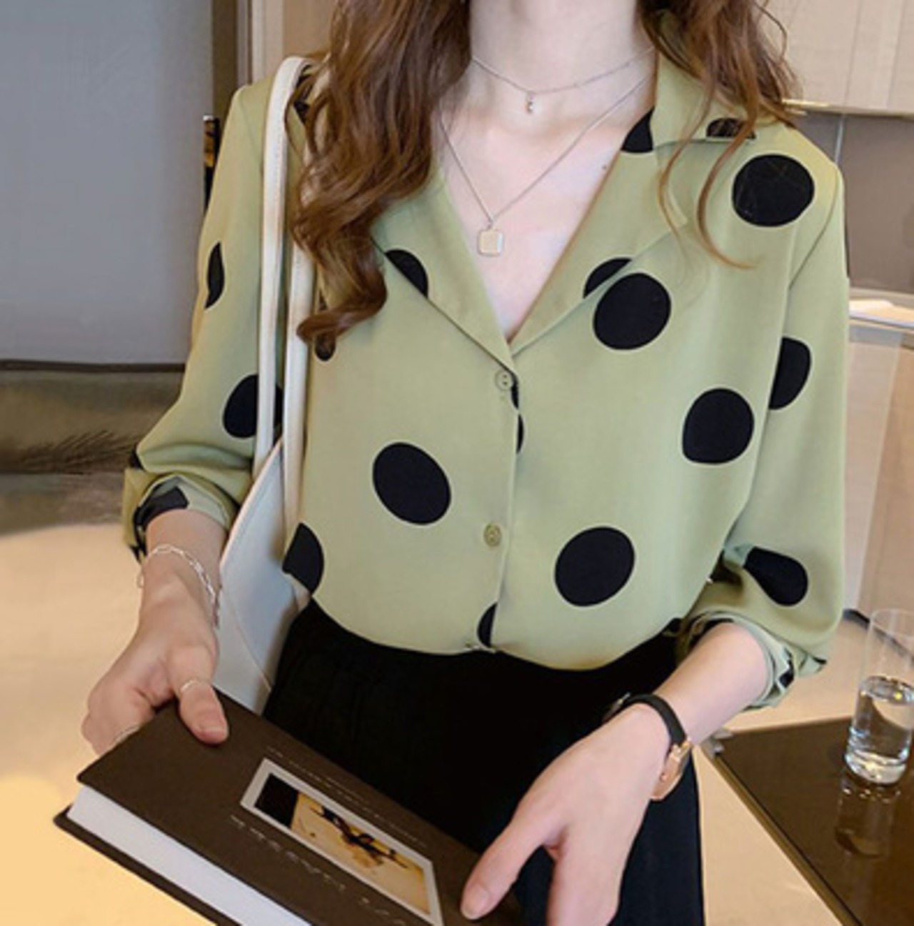 シャツ オープンカラー 水玉 ポルカドット トップス レトロ 大きいサイズ ママコーデ 通勤 オフィス デート お出かけ MH2182