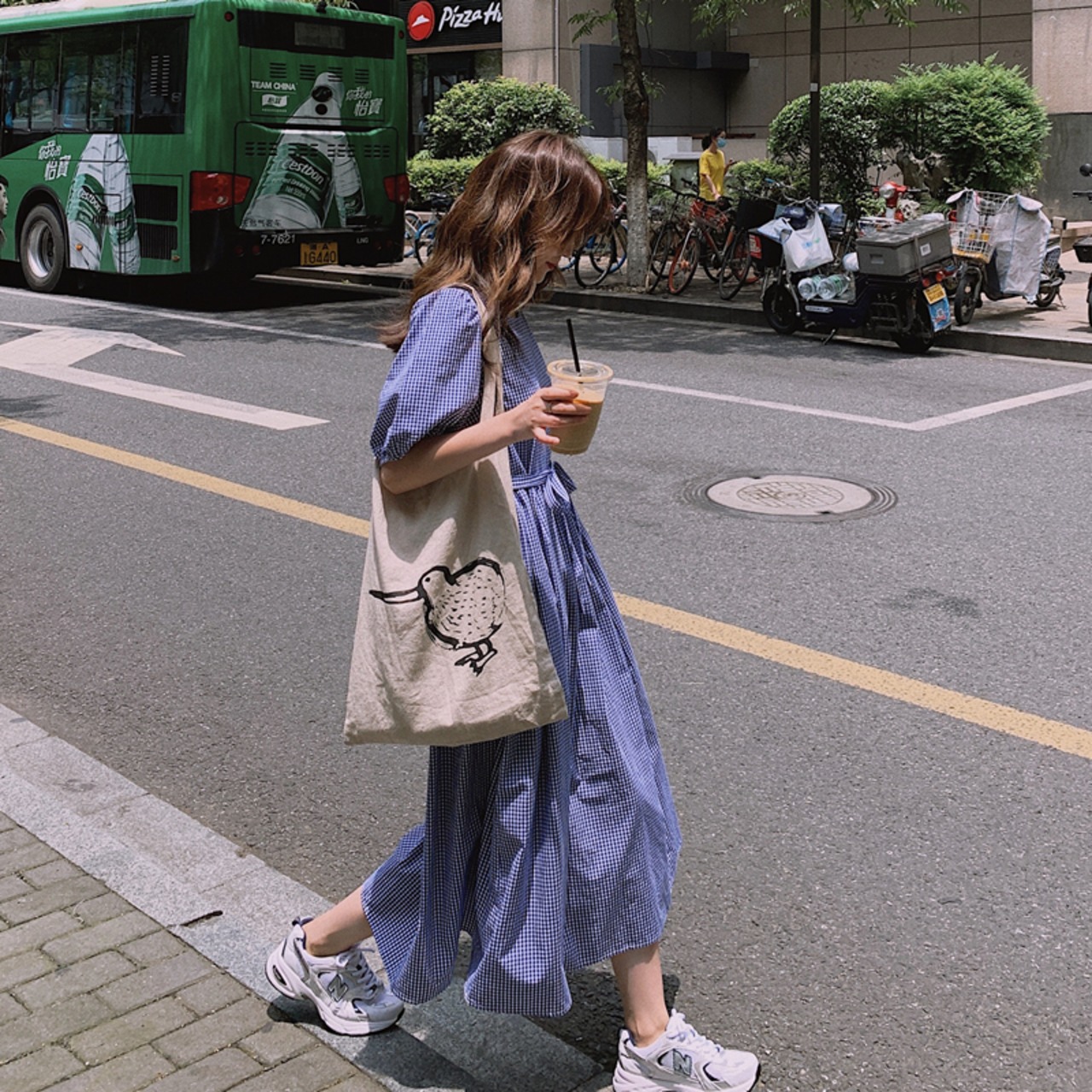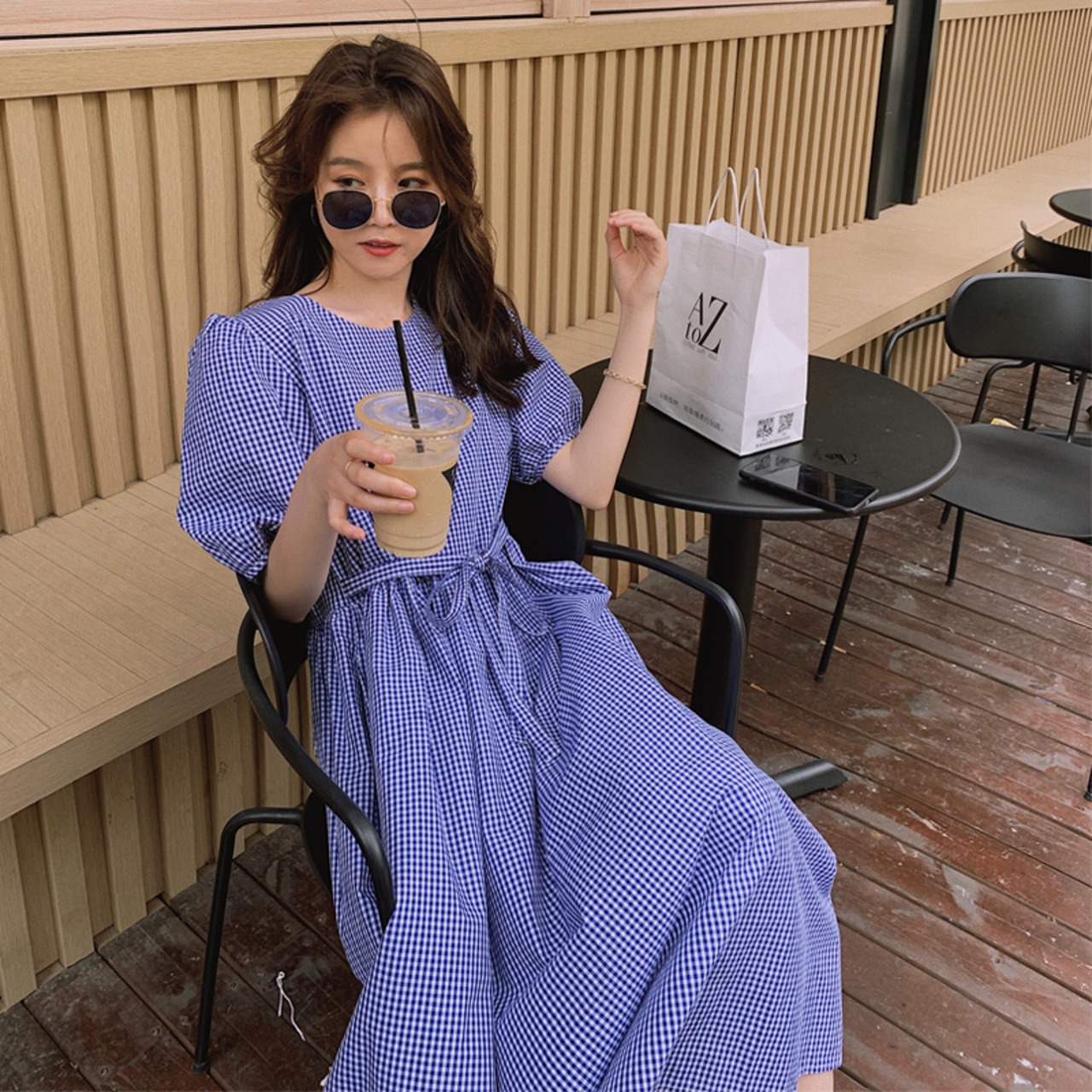 ワンピース ギンガムチェック ロング丈 パフスリーブ ガーリー フェミニン ママコーデ デート お出かけ MH2225
