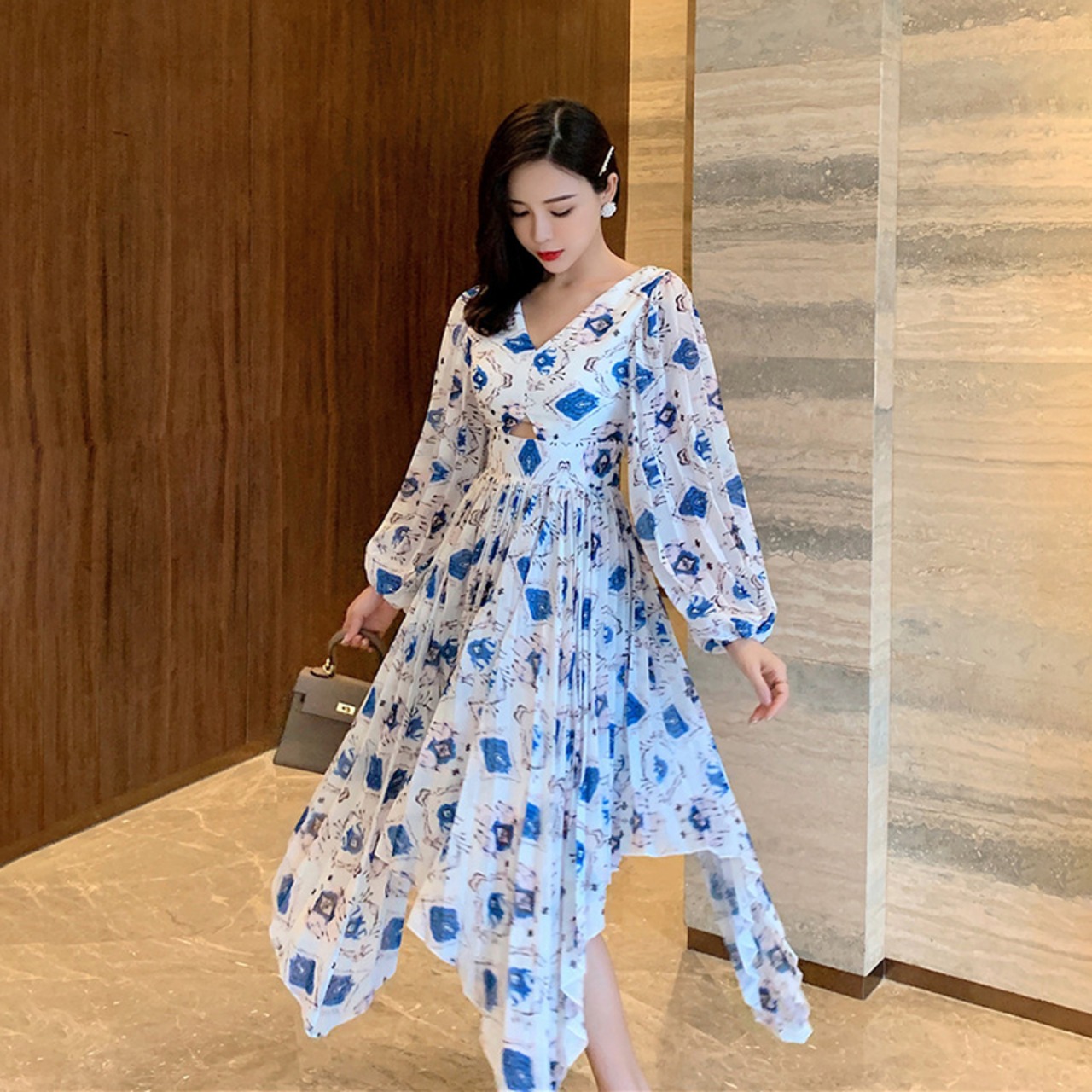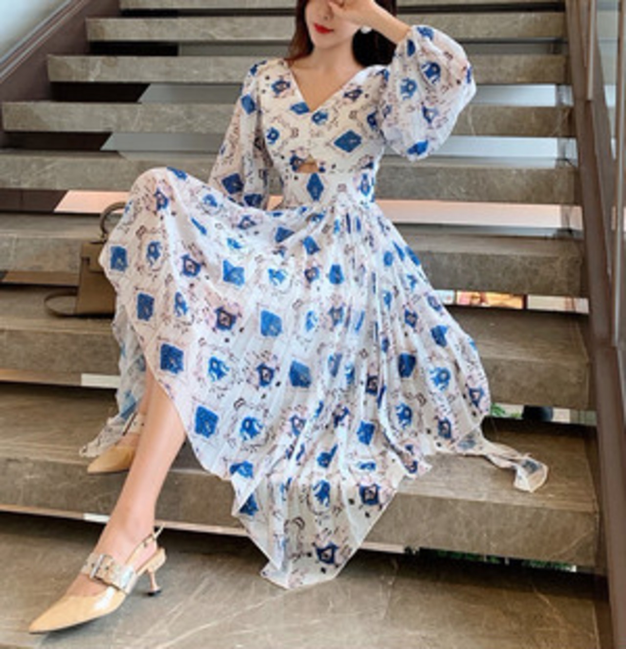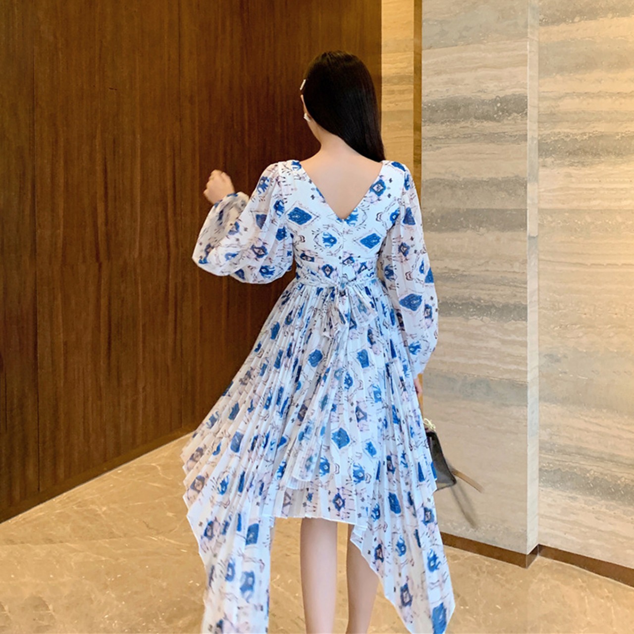 シフォンワンピース ワンピース イレギュラーヘム レトロ ノスタルジック 大人可愛い ママコーデ デート お出かけ MH2247