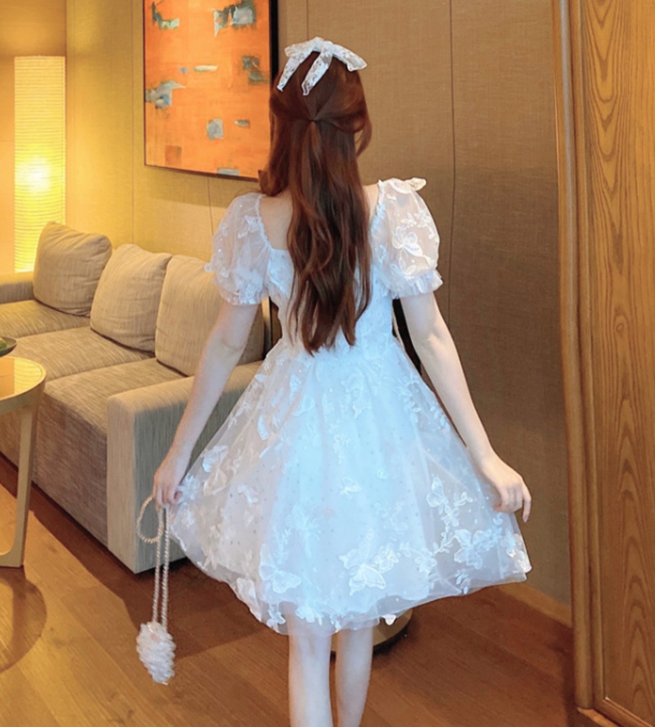 バタフライモチーフがかわいいドレス。