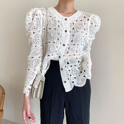 カーディガン 長袖 かぎ編み クロッシェレース ニット 大人可愛い 通勤 ママコーデ デート お出かけ MH2265