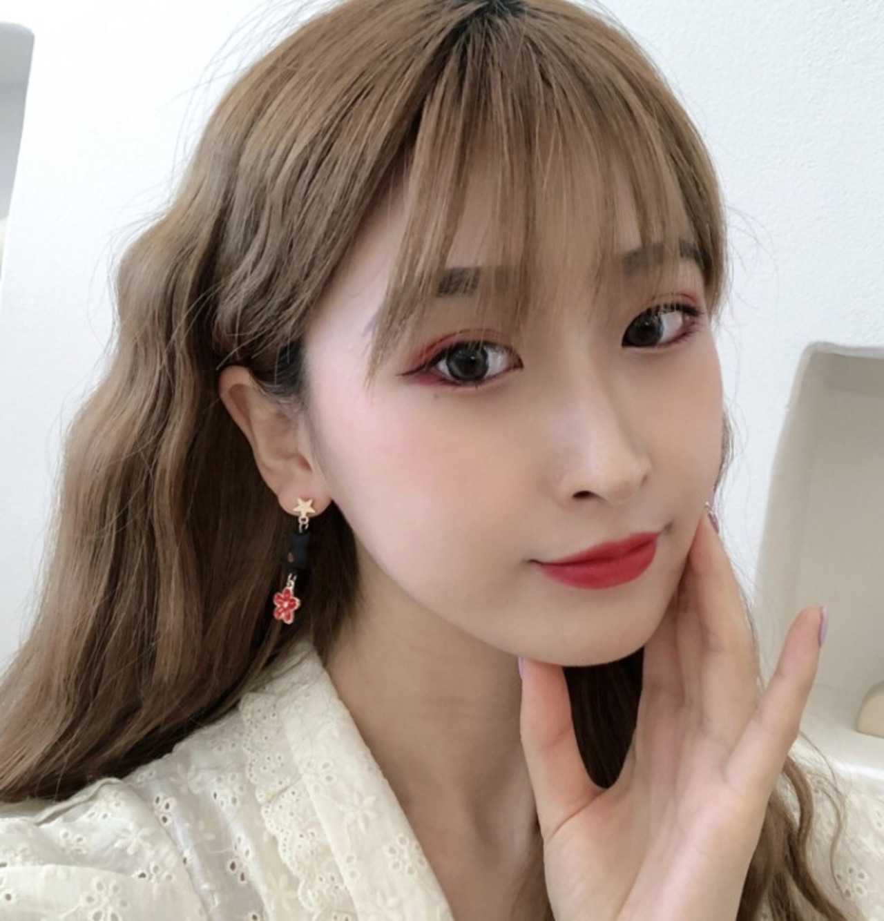 ネコと花模様のピアス♪