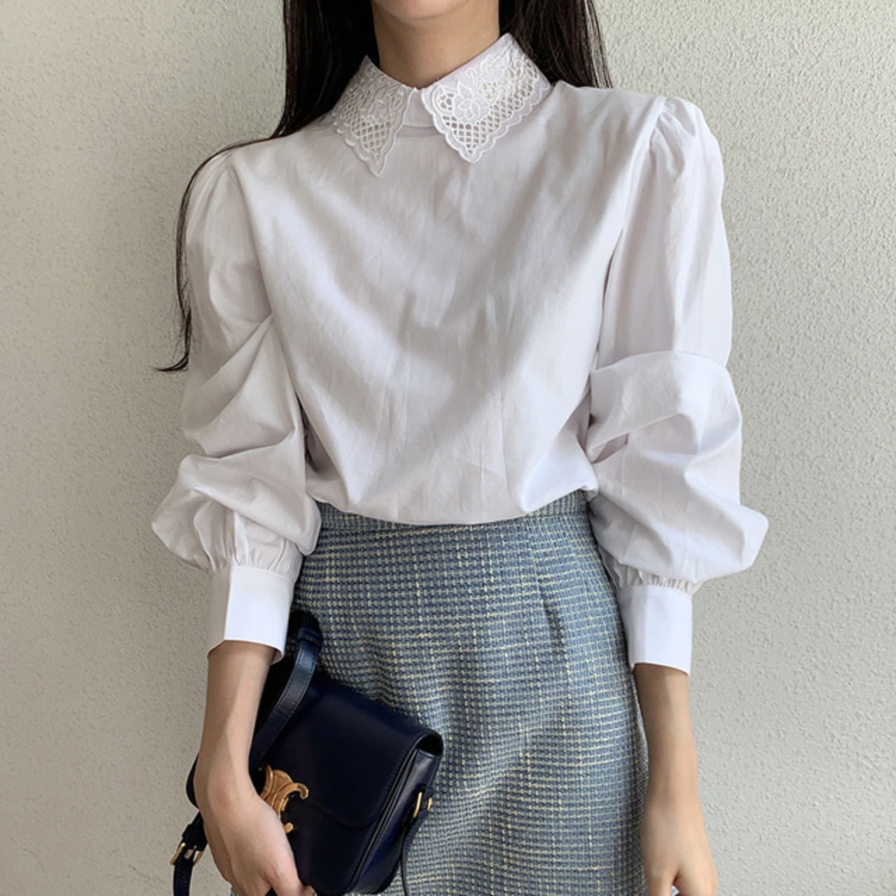 刺繍襟がかわいいブラウス。