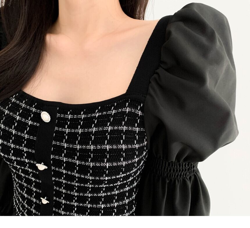 ブラウス トップス チェック柄 ショート丈 長袖 パフスリーブ デート ガーリー お出かけ MH2292