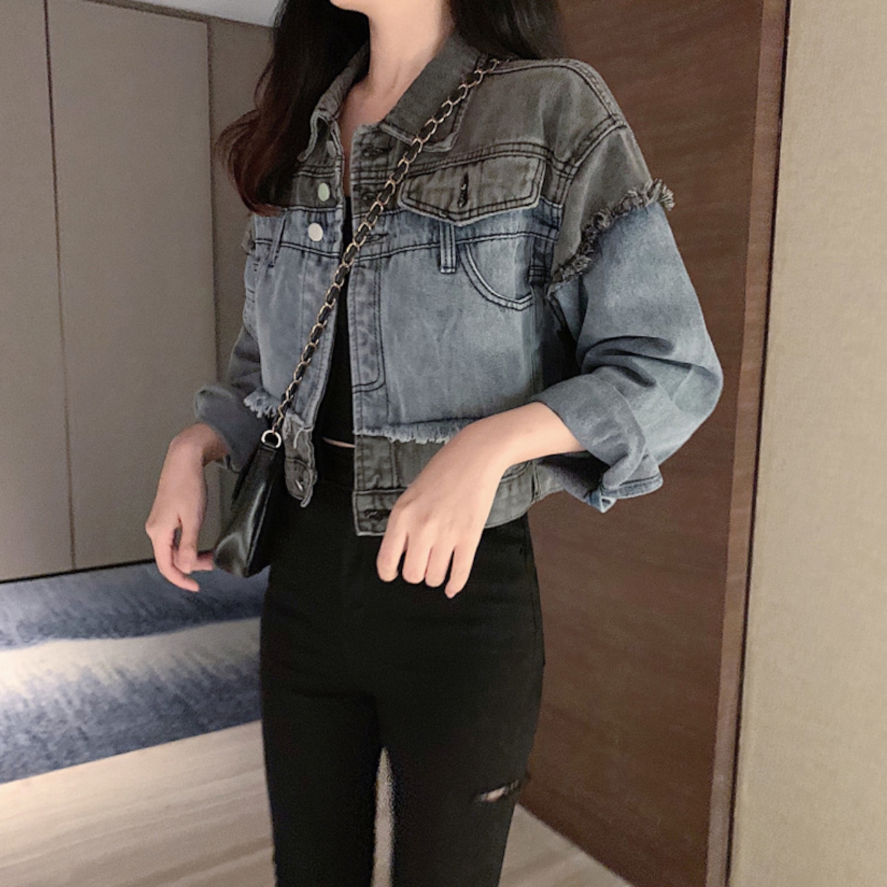 デニムジャケット ジャケット デニム ショート丈 ヴィンテージ風 カジュアル 甘辛 ママコーデ デート お出かけ MH2298