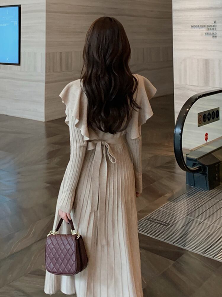 ワンピース ニットワンピース ニットワンピ 長袖 フリル きれいめ 大人可愛い デート お呼ばれ 記念日 MH2367