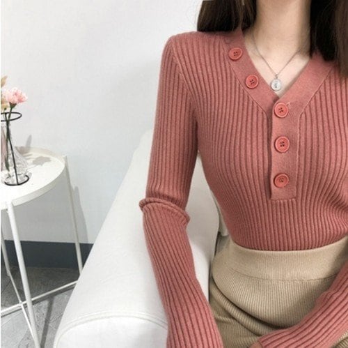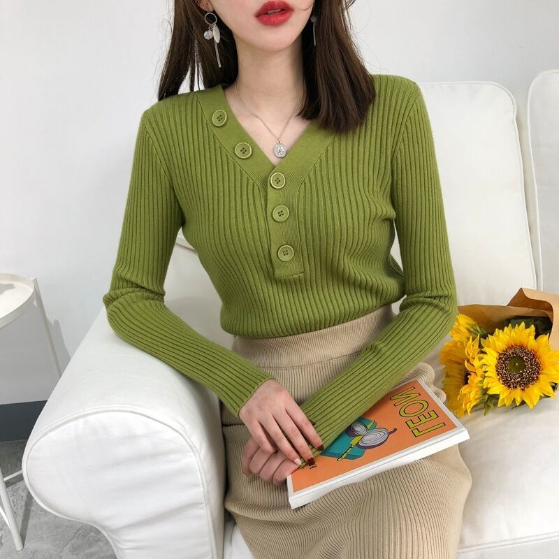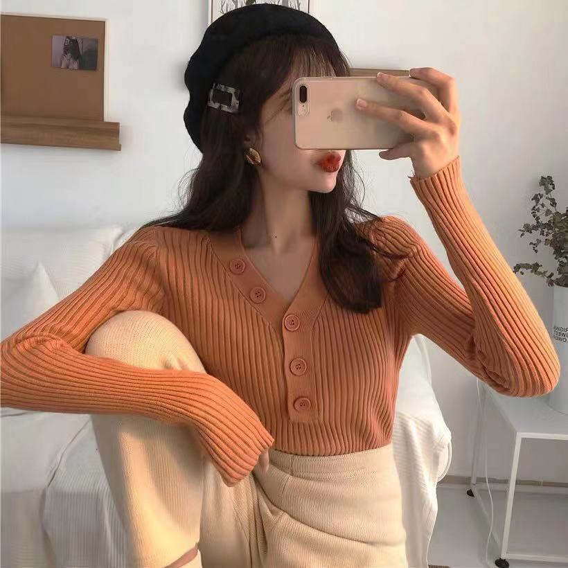 ニット セーター リブニット Vネック トップス スリムフィット カラバリ豊富 カジュアル ママコーデ 秋 デート お出かけ MH2386