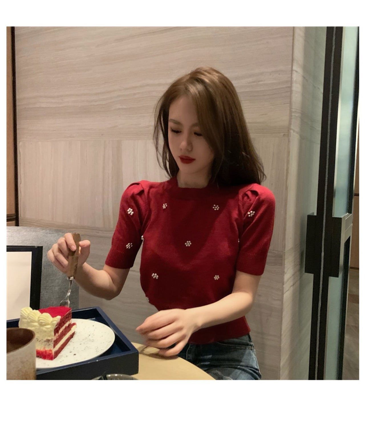 ニット セーター 半袖 ビジュー付き きれいめ 大人可愛い ママコーデ OL 通勤 オフィス デート お出かけ 秋 MH2390