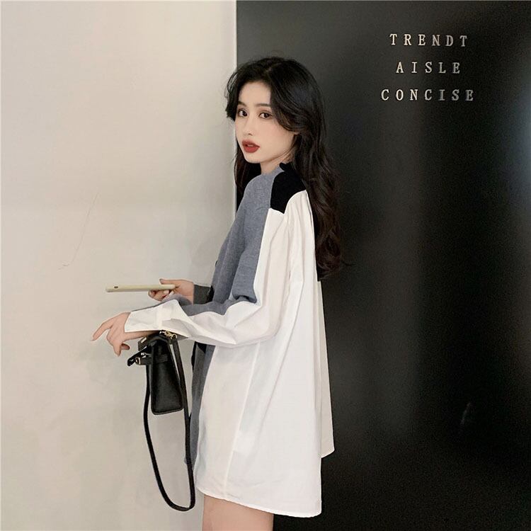 カーディガンとシャツをドッキングしたようなデザインが魅力的♪