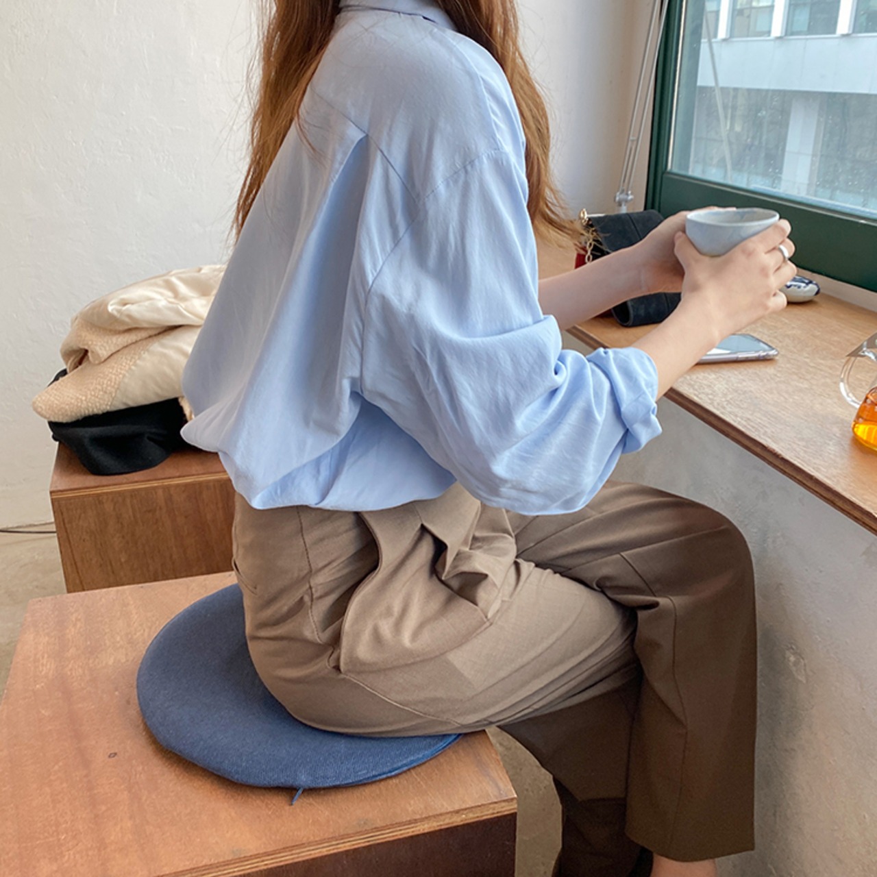 シンプルな長袖シャツ。