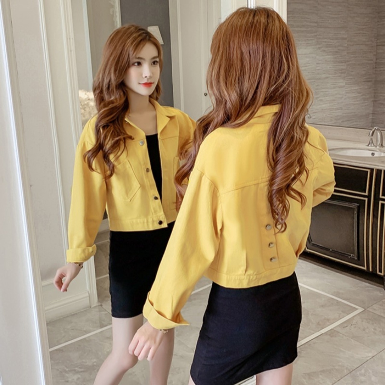 ジャケット デニム ジージャン アウター バックボタン カジュアル 無地 カラバリ豊富 ママコーデ デート お出かけ MH2404