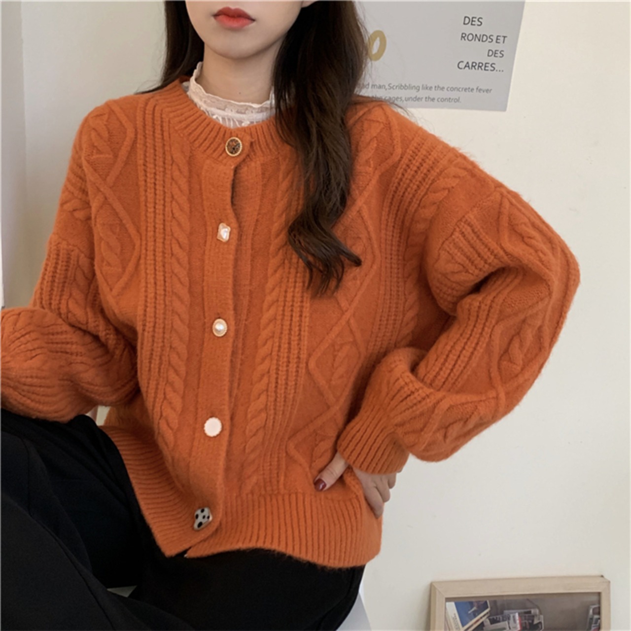 カーディガン ニット セーター トップス 長袖 ラウンドネック おしゃれボタン カラバリ豊富 ガーリー ママコーデ デート お出かけ MH2415