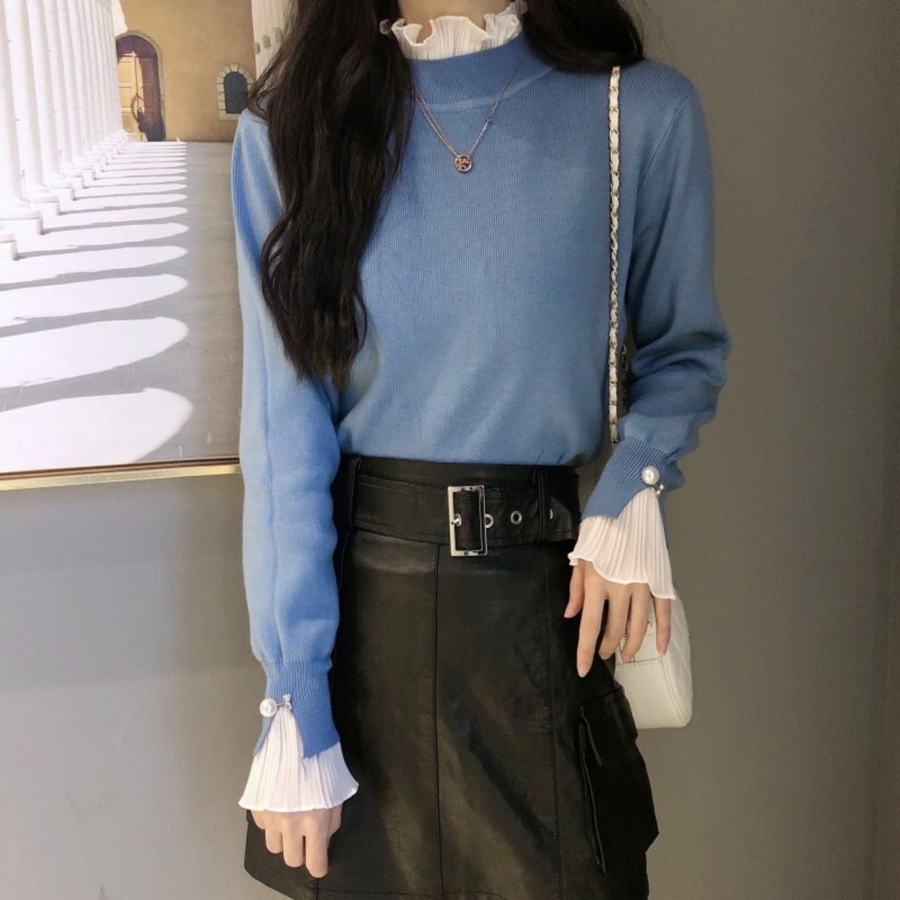 シャツとセーターを重ね着したようなおしゃれなトップス。