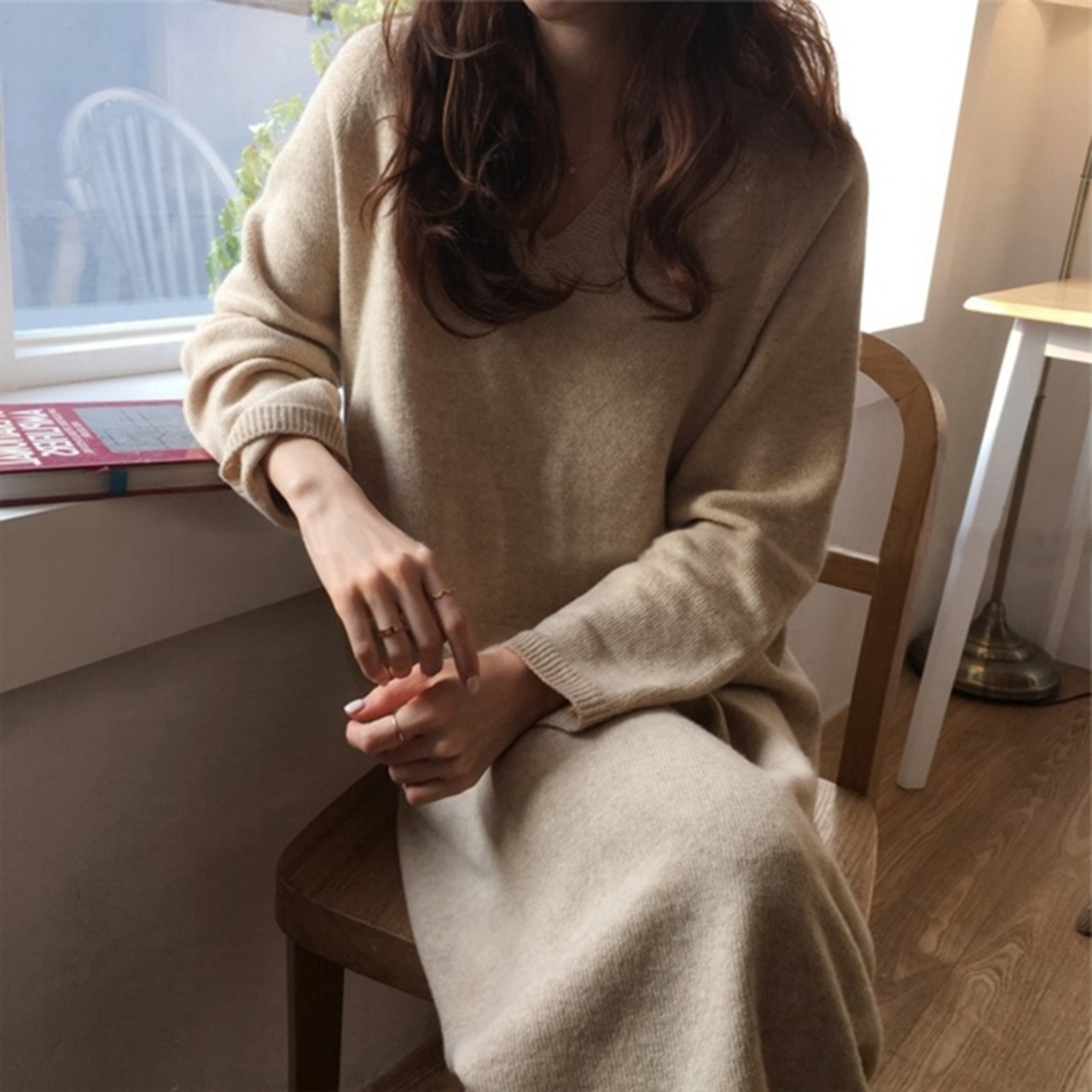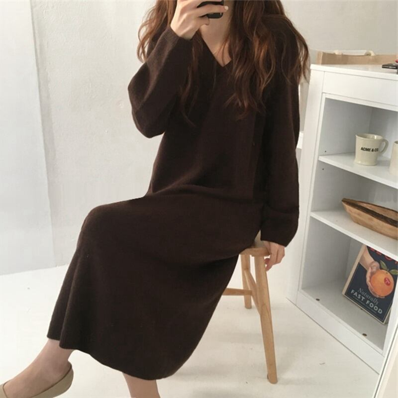 ワンピース ロング丈 Vネック ニット ゆったり 大きいサイズ 体型カバー ママコーデ カジュアル デート お出かけ
