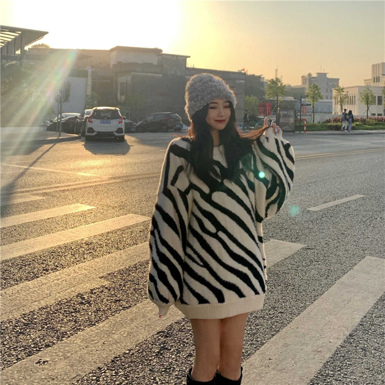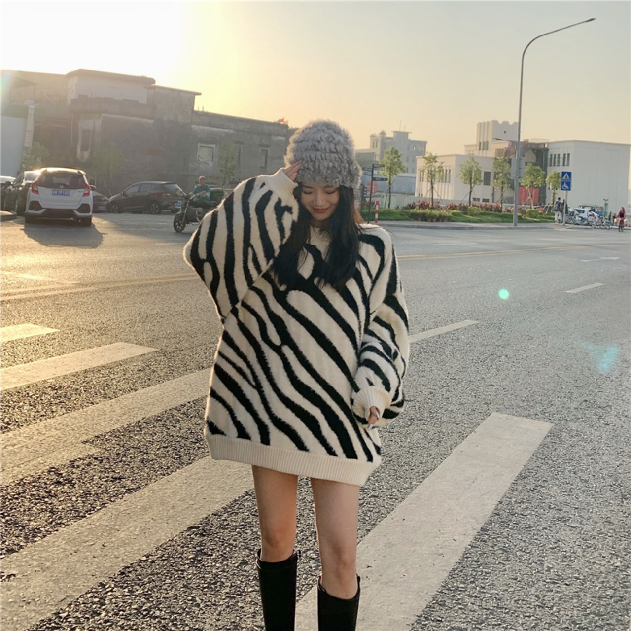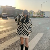 ゼブラ柄プルオーバー トップス ゼブラ柄 ゆったり 体型カバー カジュアル 秋冬 ママコーデ デート お出かけ MH2443