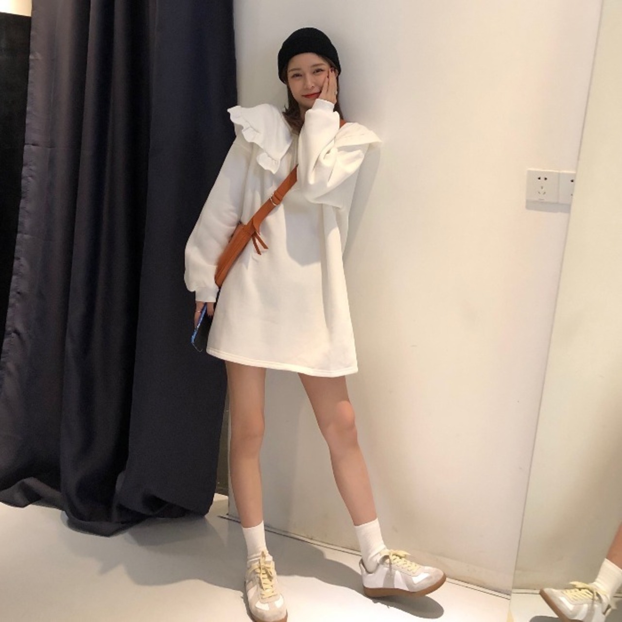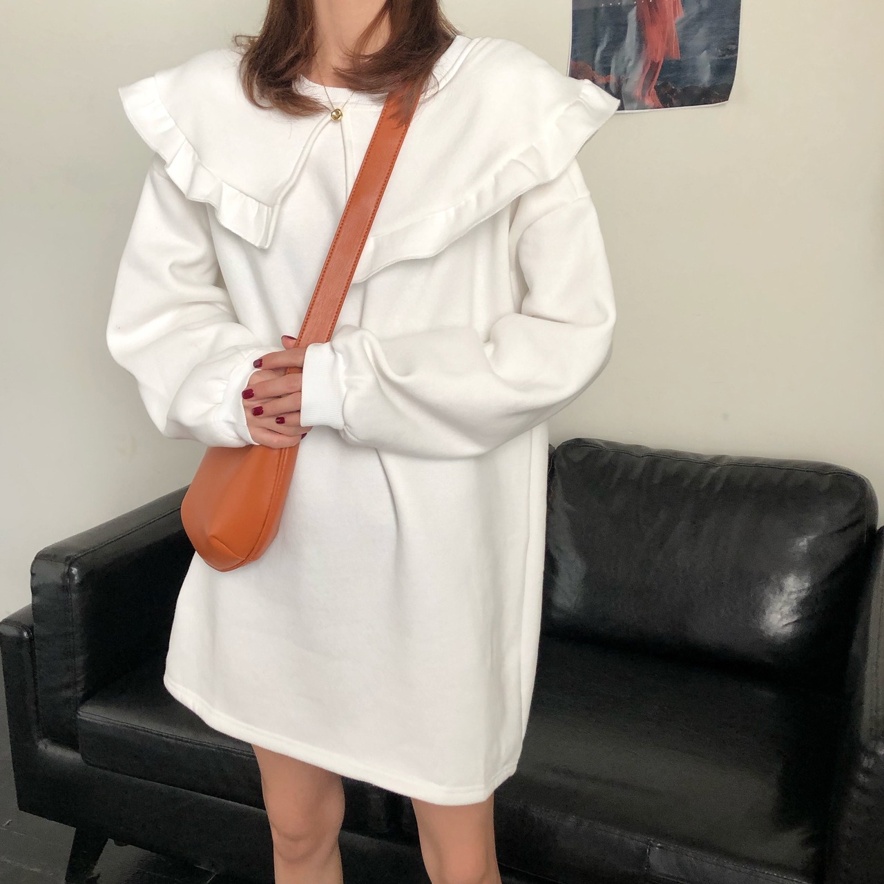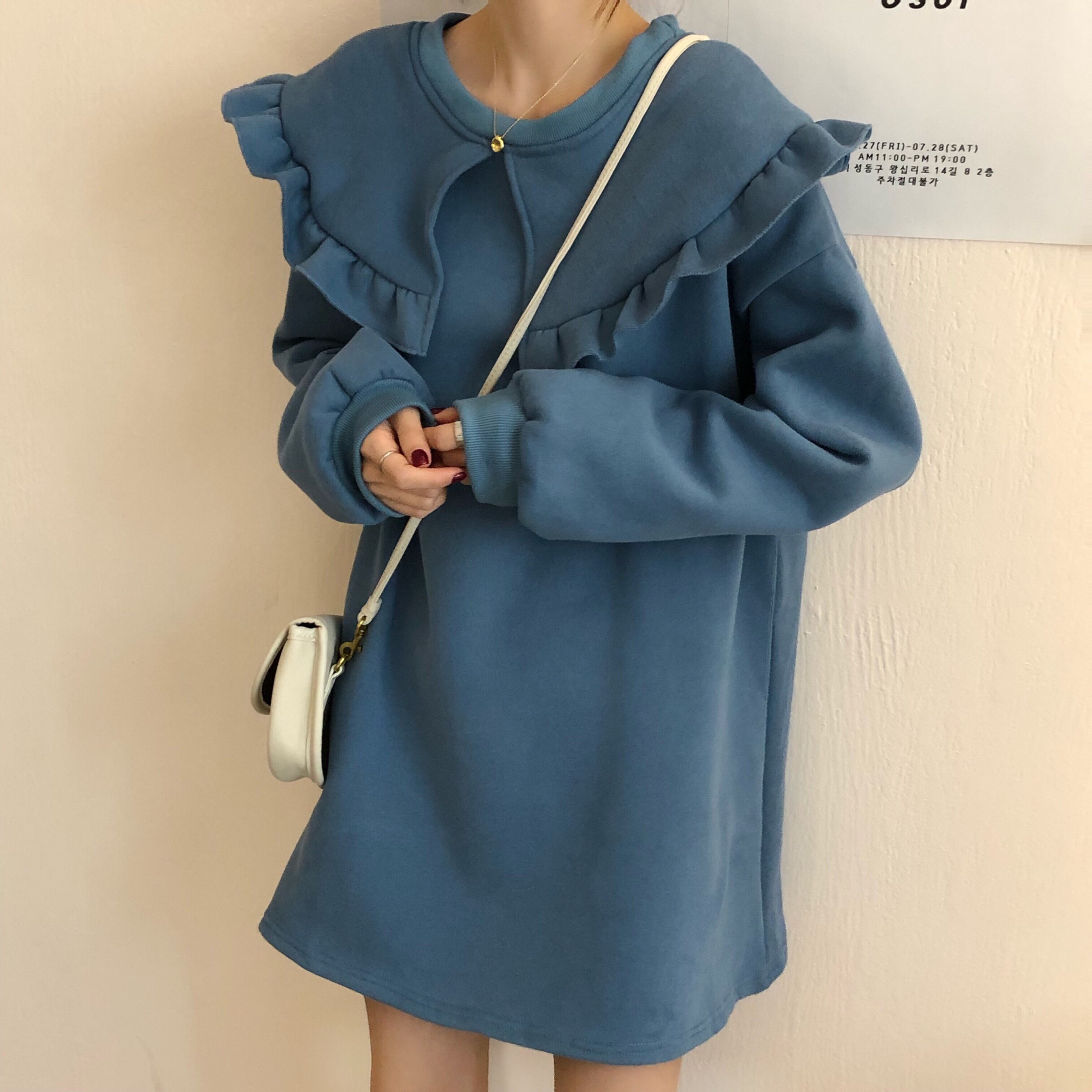 ワンピース フリル襟 大きな襟 ミニ丈 長袖 無地 フェミニン ガーリー 秋冬 デート お出かけ MH2446