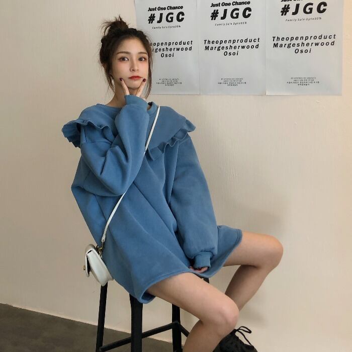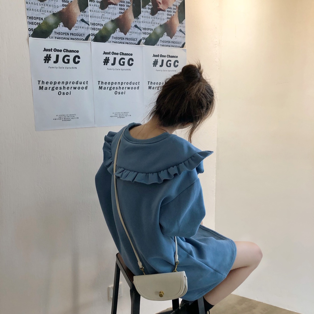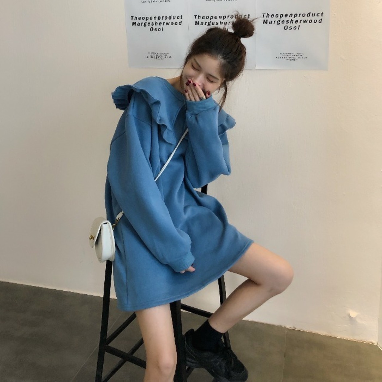 ワンピース フリル襟 大きな襟 ミニ丈 長袖 無地 フェミニン ガーリー 秋冬 デート お出かけ MH2446