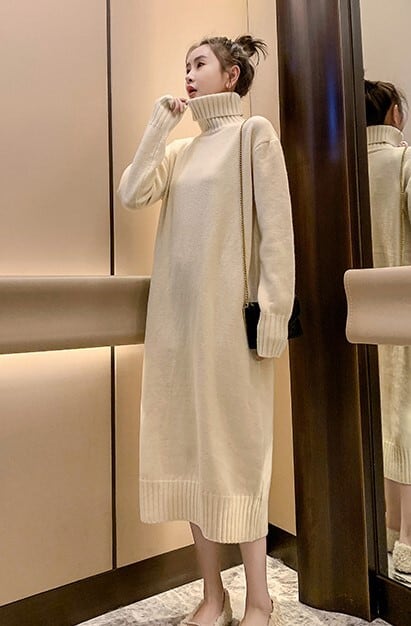 ワンピース マタニティ ミモレ丈 マタニティワンピ 秋冬 ニット タートルネック ゆったり 長袖 厚手 ab1850
