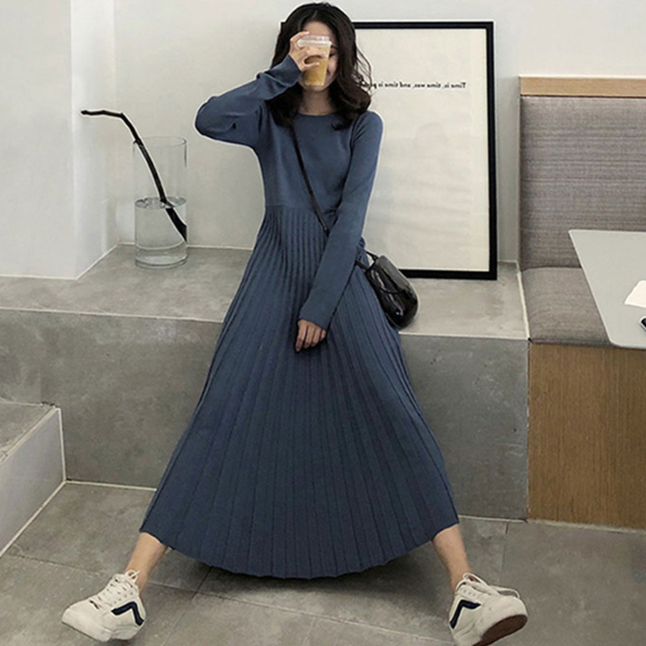 ワンピース ロング丈 ニットワンピース プリーツ 長袖 ニット セーター カジュアル きれいめ ママコーデ デート お出かけ MH2467