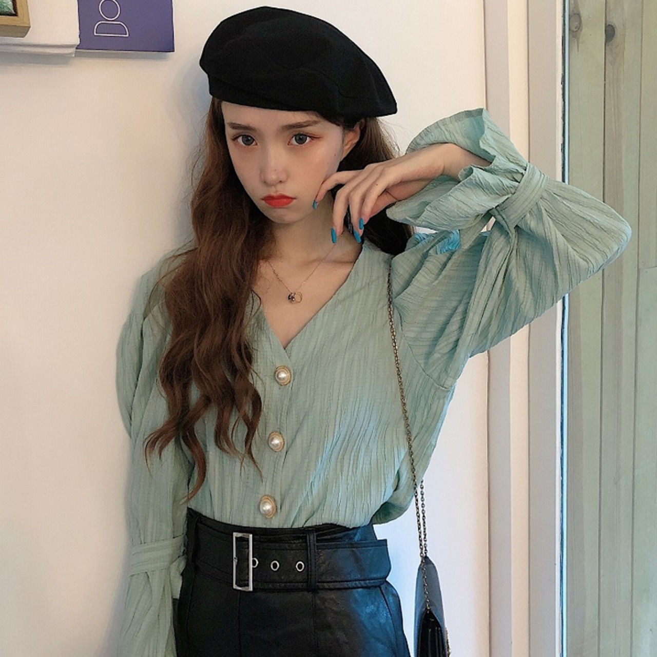 シックなVネックブラウス。
