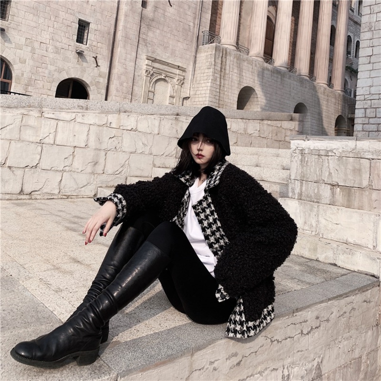 コート ジャケット アウター もこもこ プードル 千鳥格子 おしゃれ カジュアル ママコーデ デート お出かけ 冬 MH2503