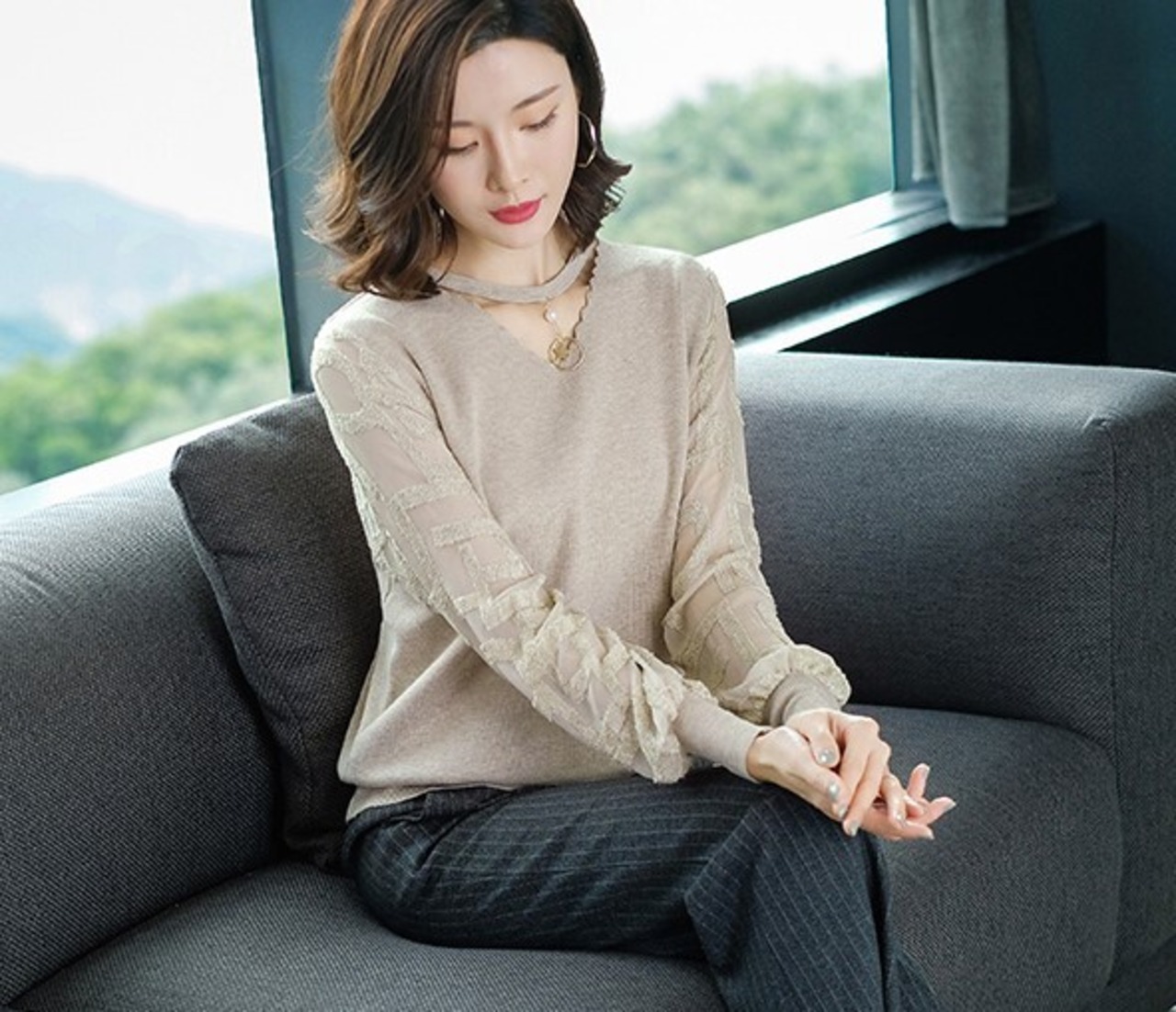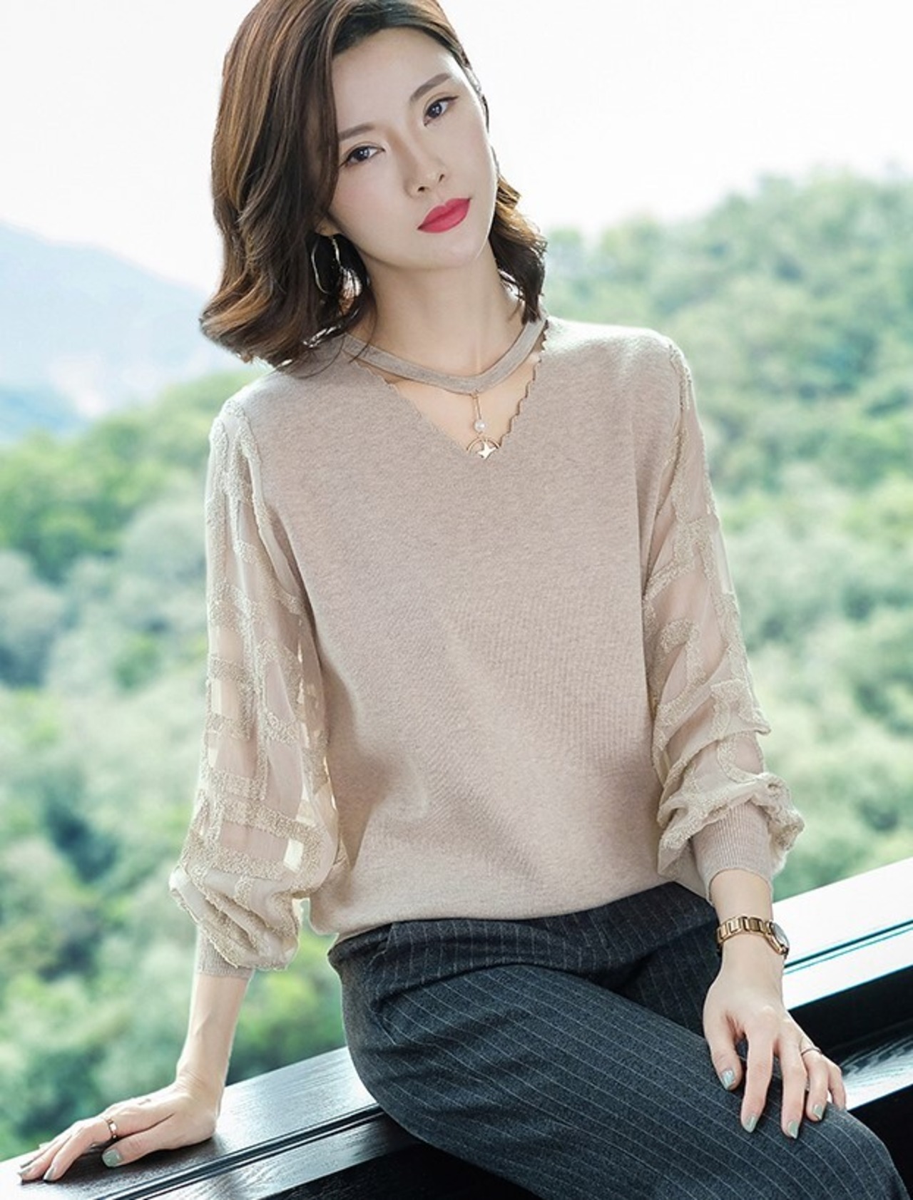 袖に透け感があるので野暮ったくない!