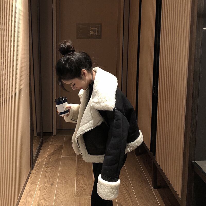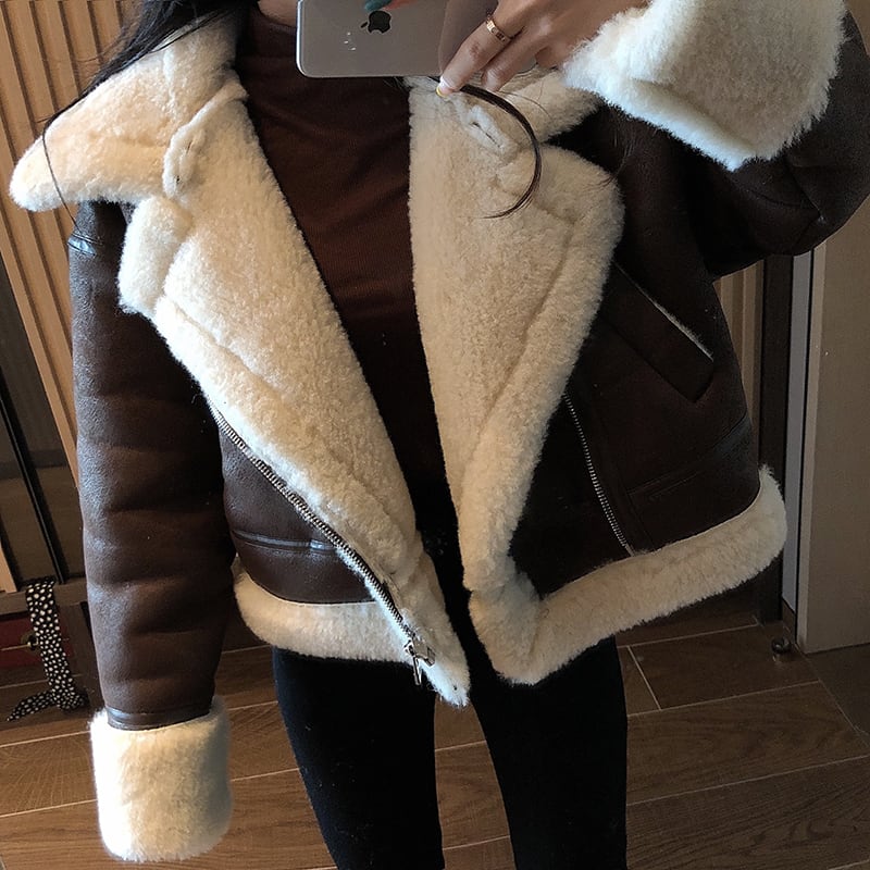 フェイクレザーとムートンがおしゃれなジャケット。