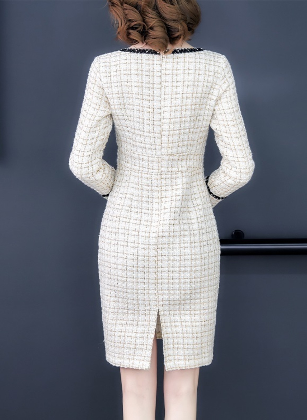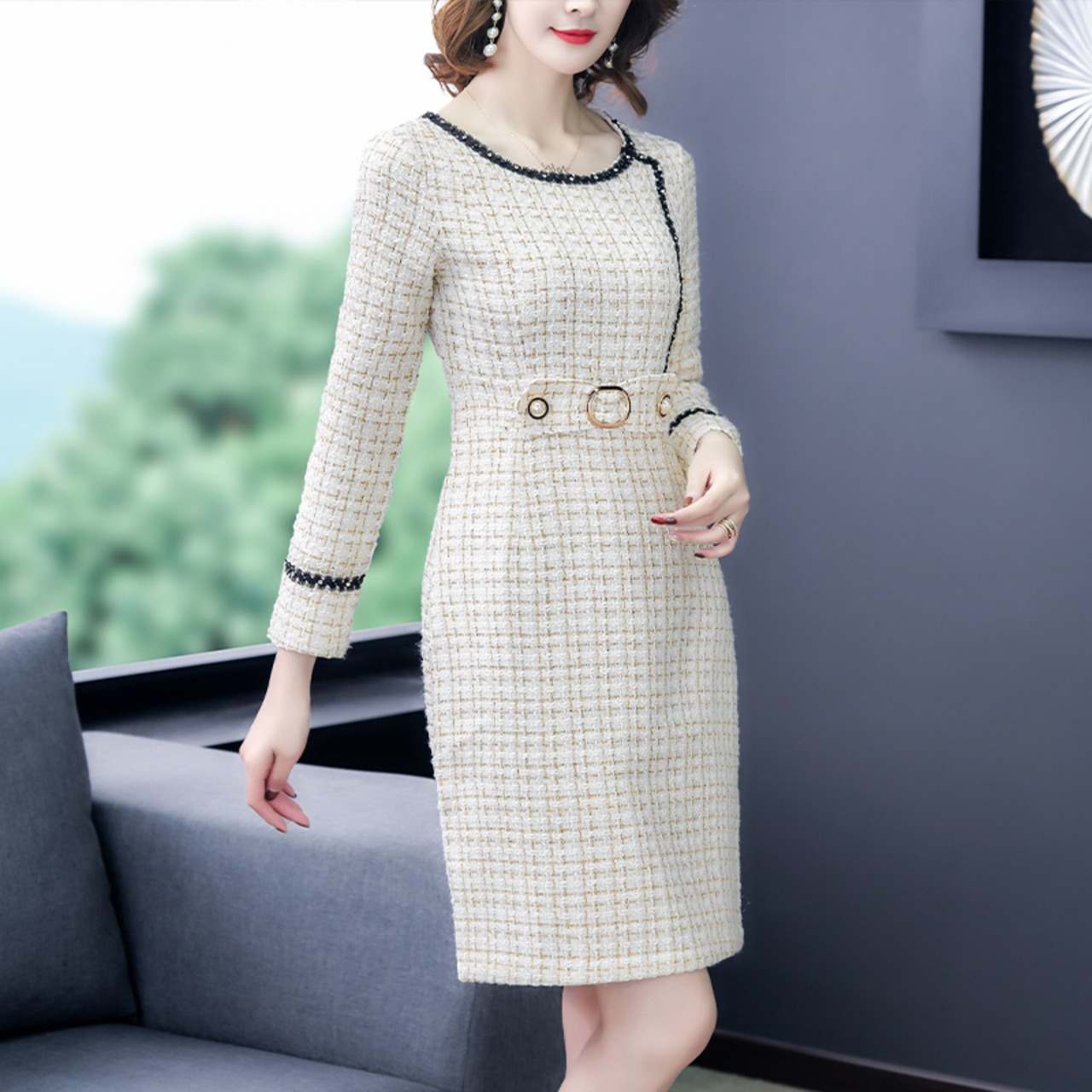 ワンピース ツイード シック エレガント 長袖 膝丈 きれいめ 通勤 OL オフィス お呼ばれ デート お出かけ MH2538