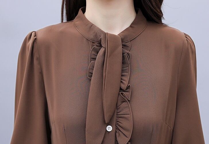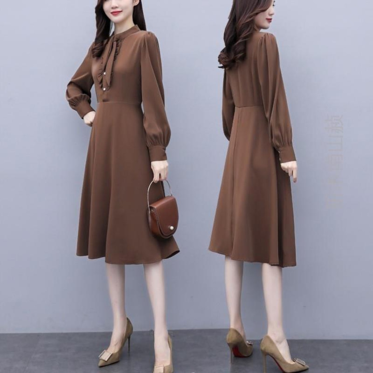 ワンピース ボウタイ 長袖 膝丈 エレガント ママコーデ 通勤 OL デート お出かけ MH2554
