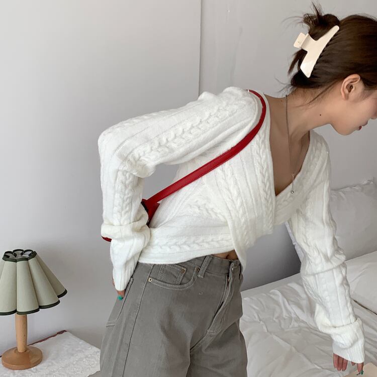 クロスVニット セーター トップス 長袖 Vネック クロス セクシー クール オトナ女子 デート お出かけ MH2593