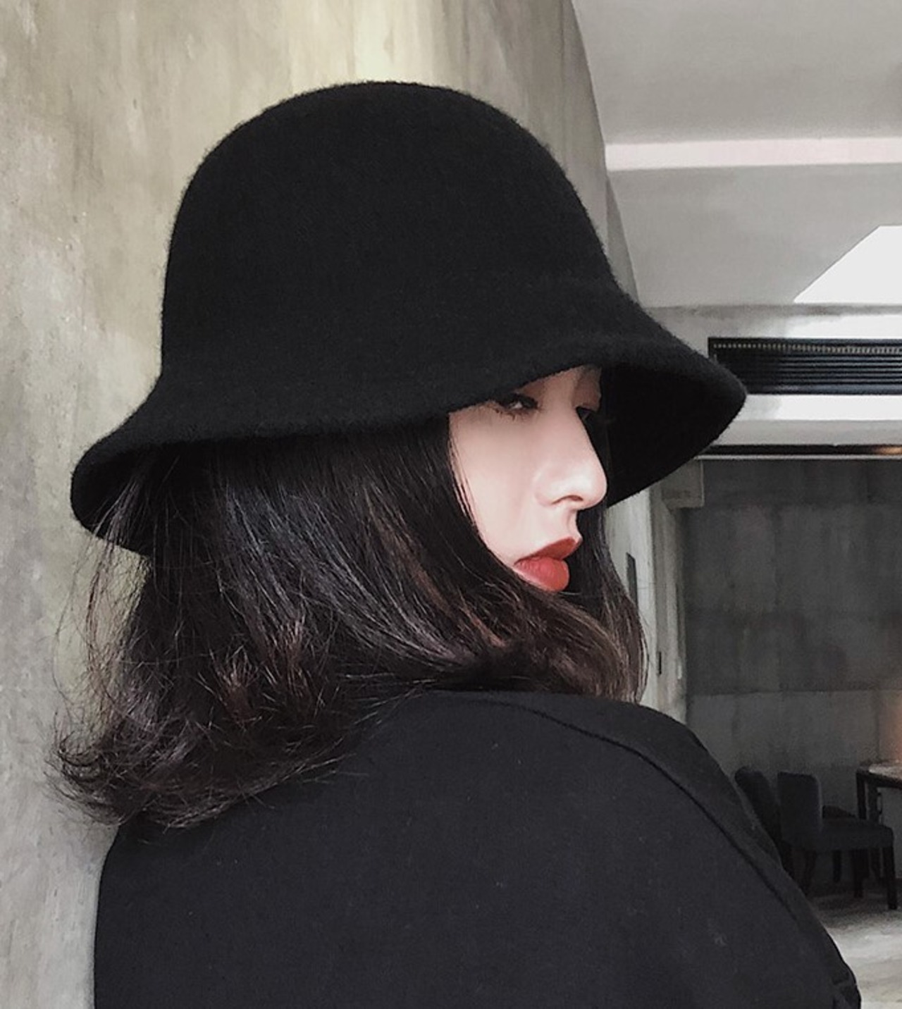 無地でシンプルな秋冬用帽子。