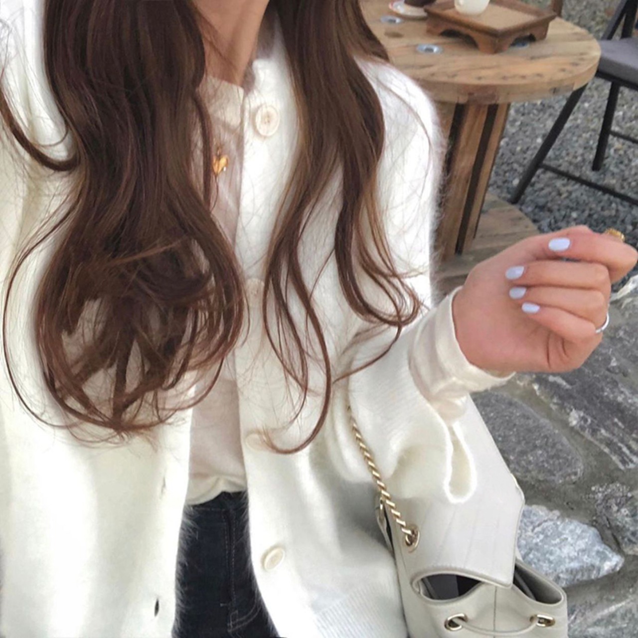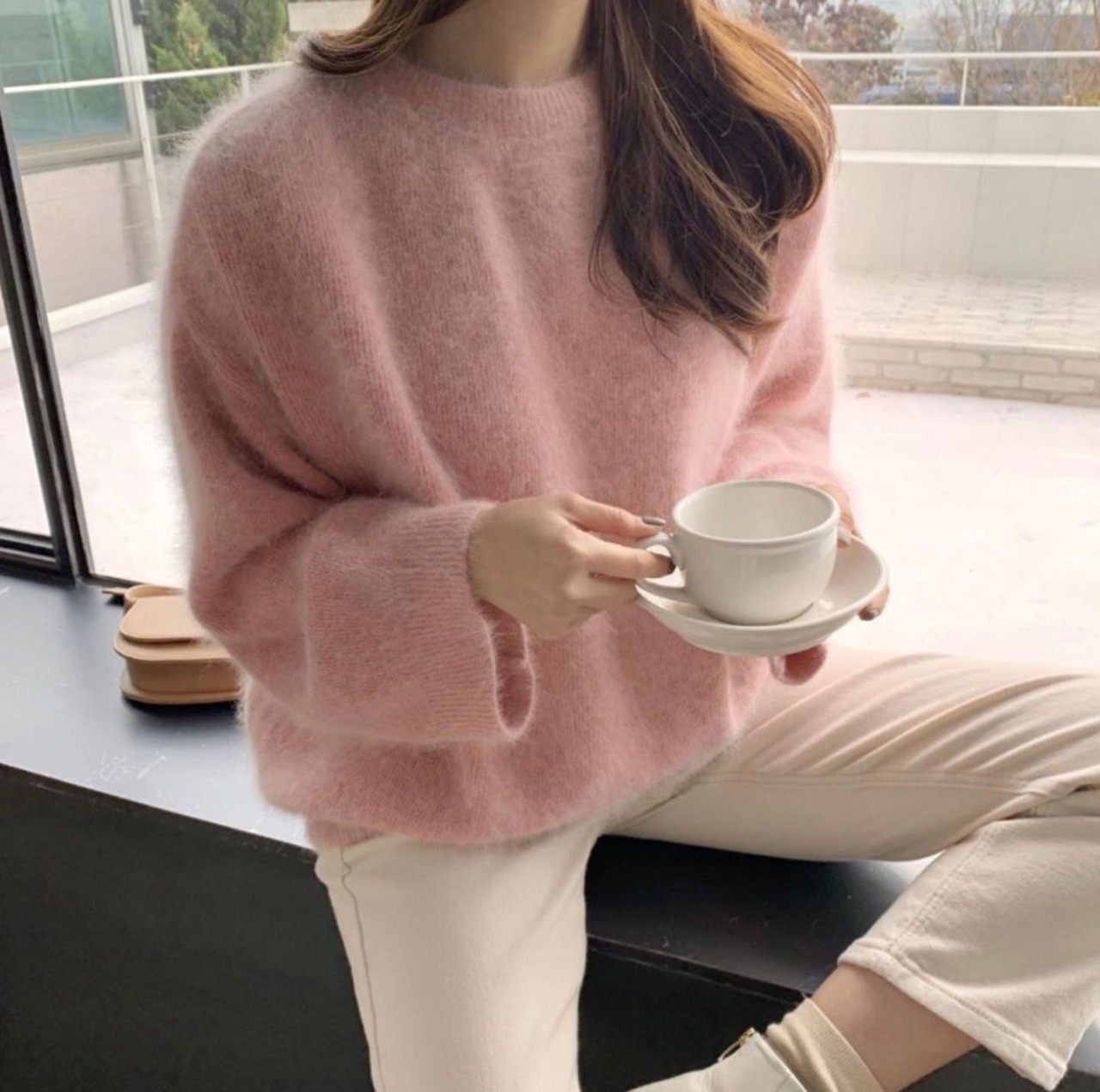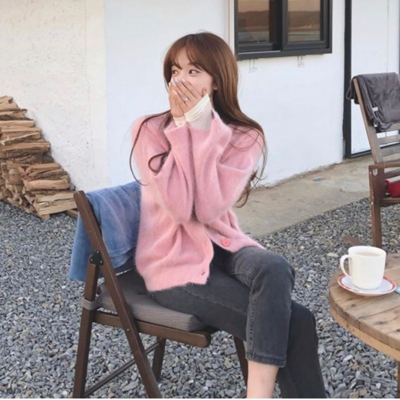ニット セーター ラウンドネック トップス カーディガン モヘアニット ママコーデ 通勤 冬 デート お出かけ MH2605