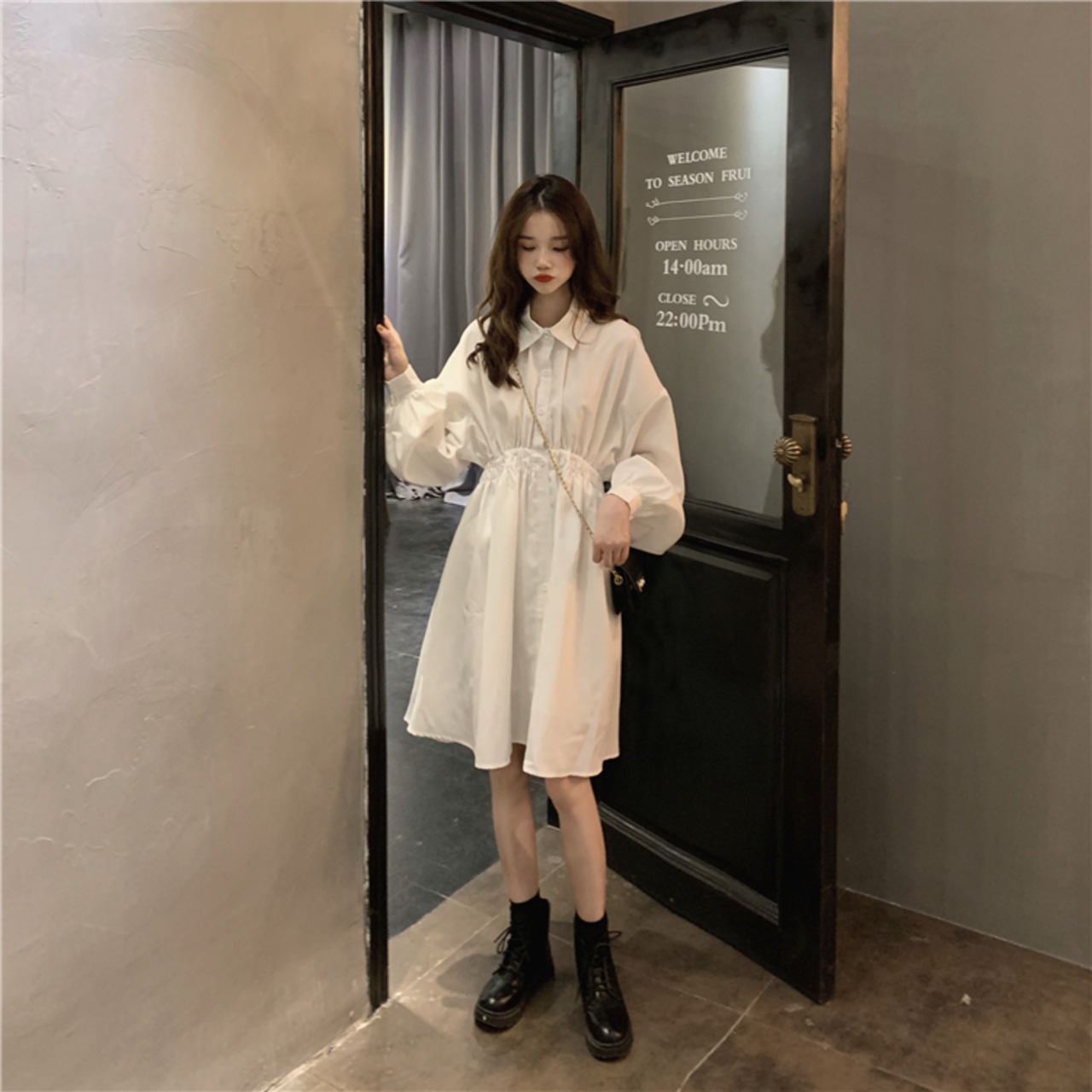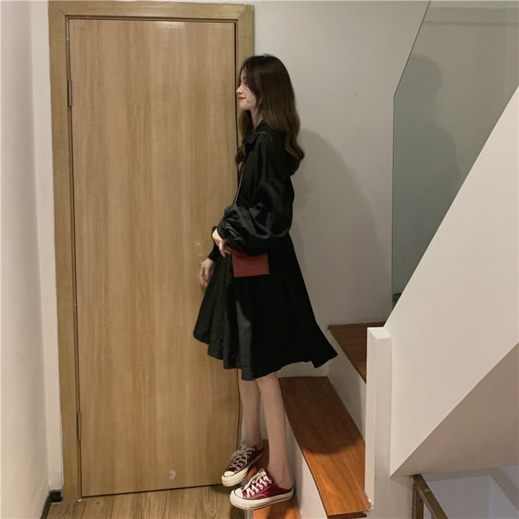 Aラインのシャツワンピース。