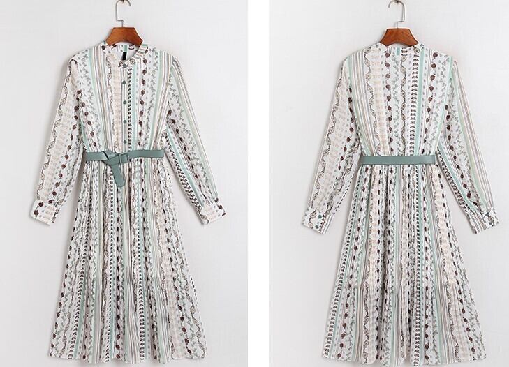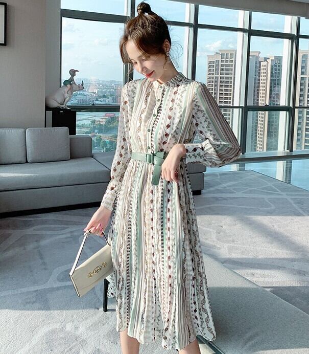 ワンピース 春ワンピ シフォンワンピース シャツワンピ レディース ひざ丈 ストライプ 花柄 ハイウエスト 小花柄 大人ガーリー ab1887