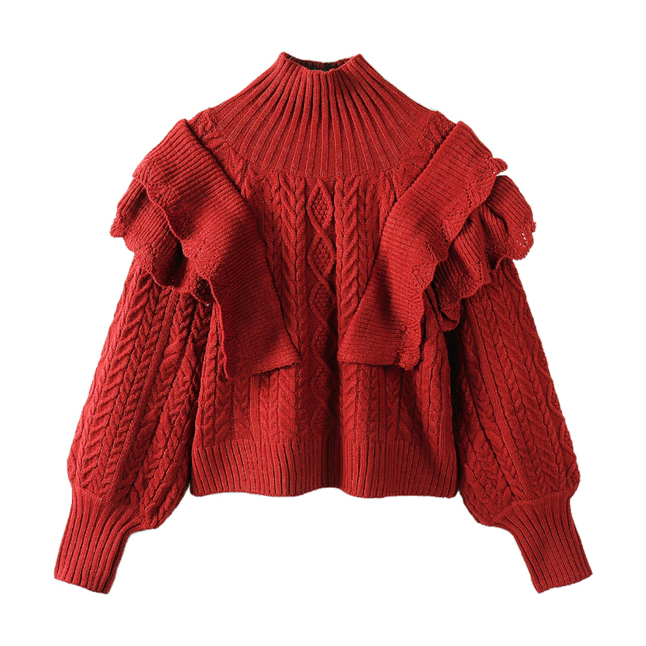 ニット セーター トップス タートルネック フリル カジュアル ママコーデ おしゃれ 大人女子 デート お出かけ MH2649