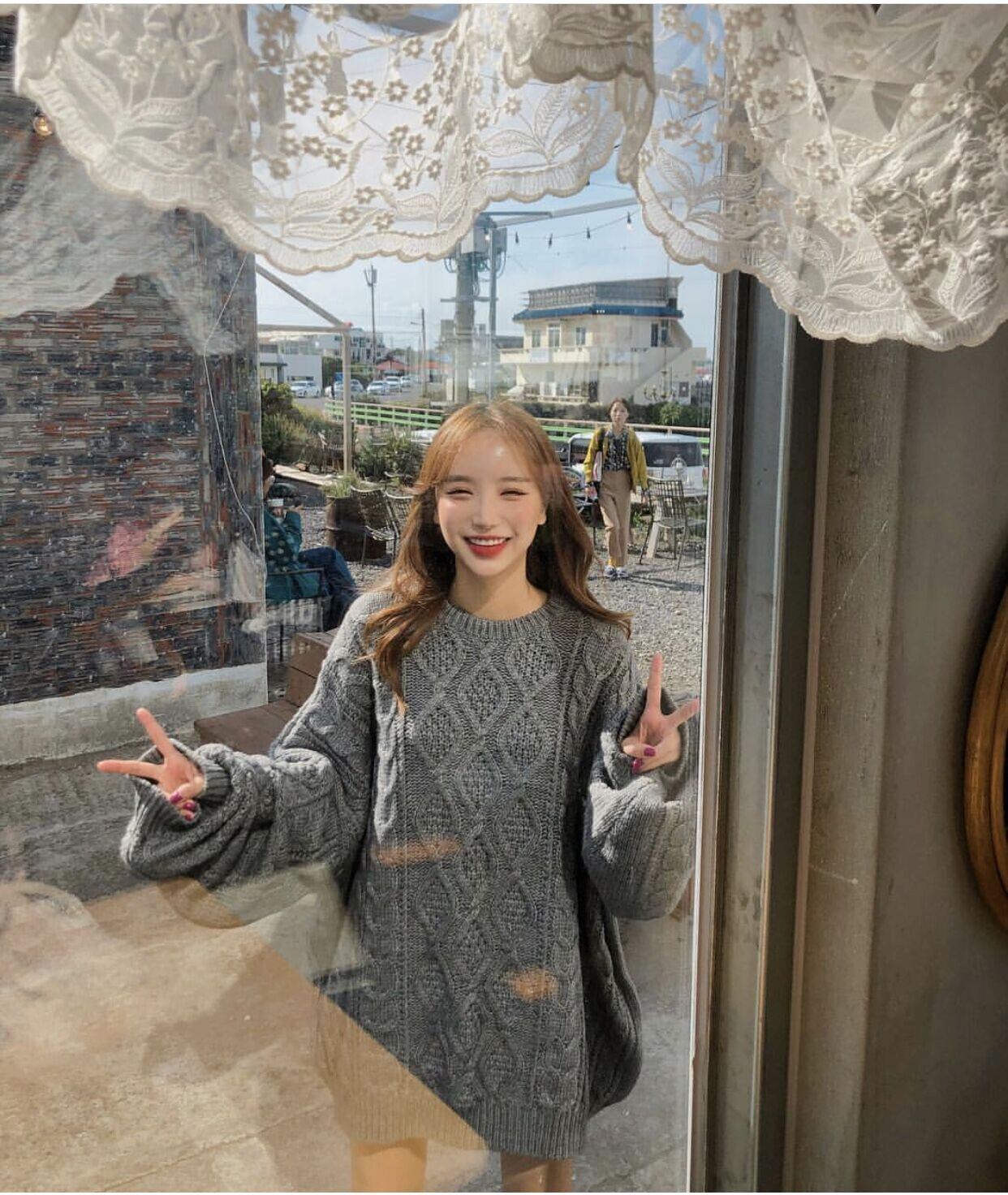 ニット セーター トップス ラウンドネック ツイストニット オーバーシルエット ゆったり カジュアル 大人可愛い ママコーデ 通勤 デート お出かけ MH2660