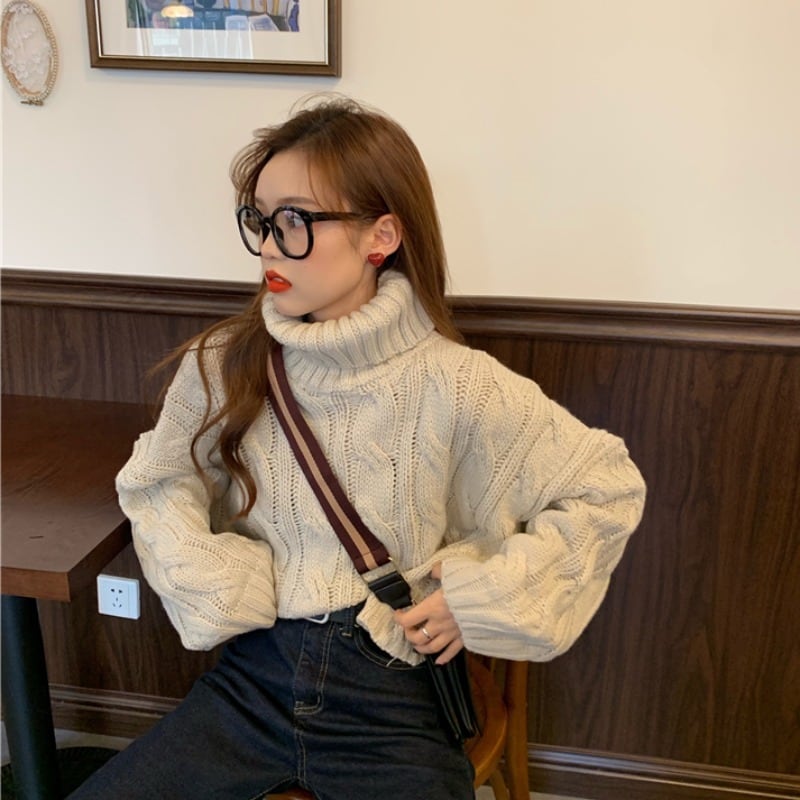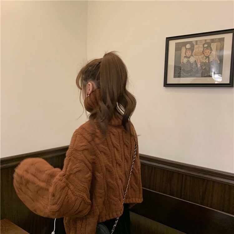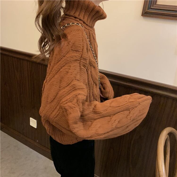 ニット セーター タートルネック ショート丈 ツイストニット カジュアル ガーリー ママコーデ デート お出かけ MH2670