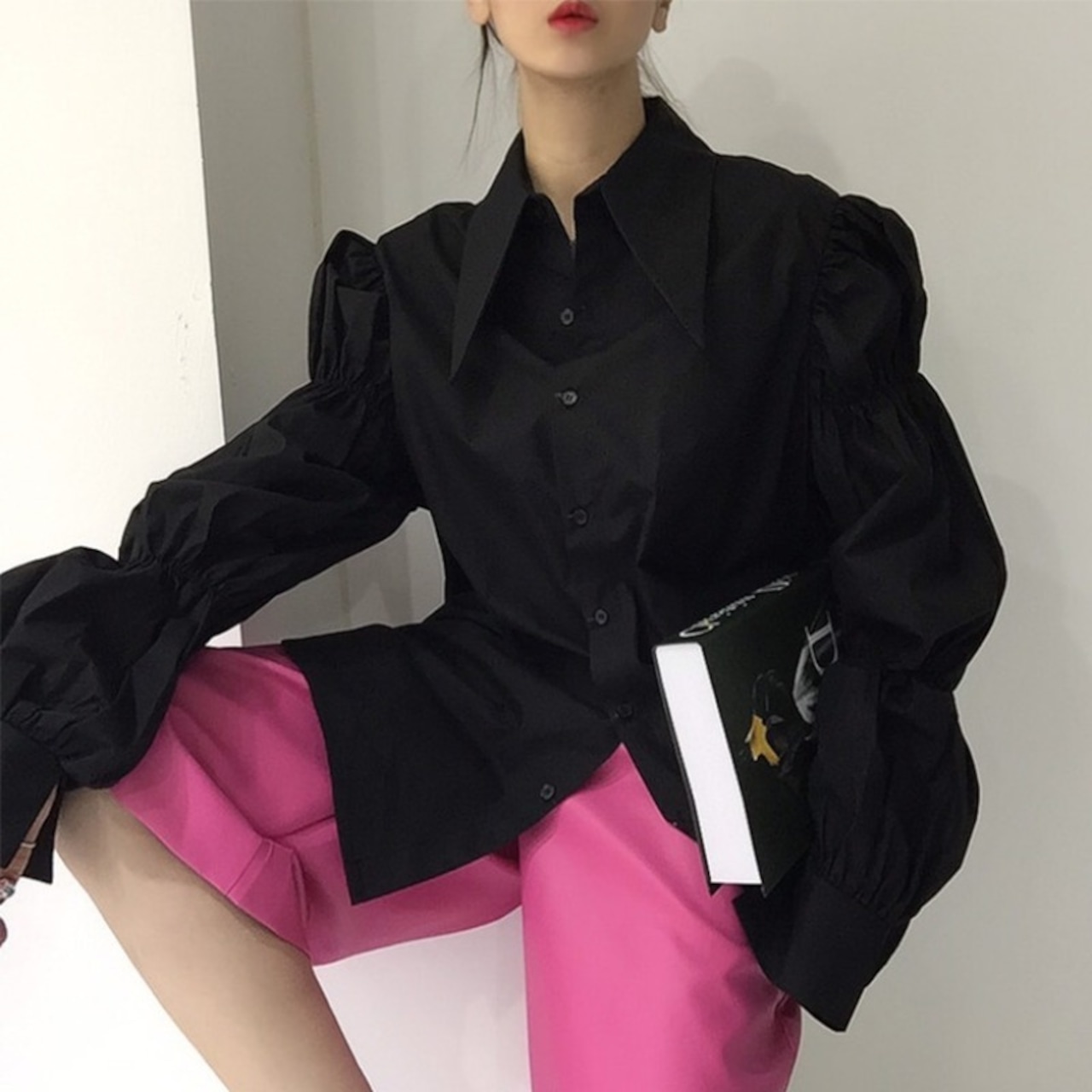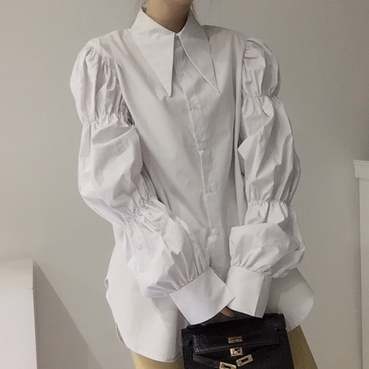 バブルスリーブとバリモアカラーがおしゃれなシャツ。