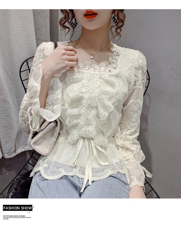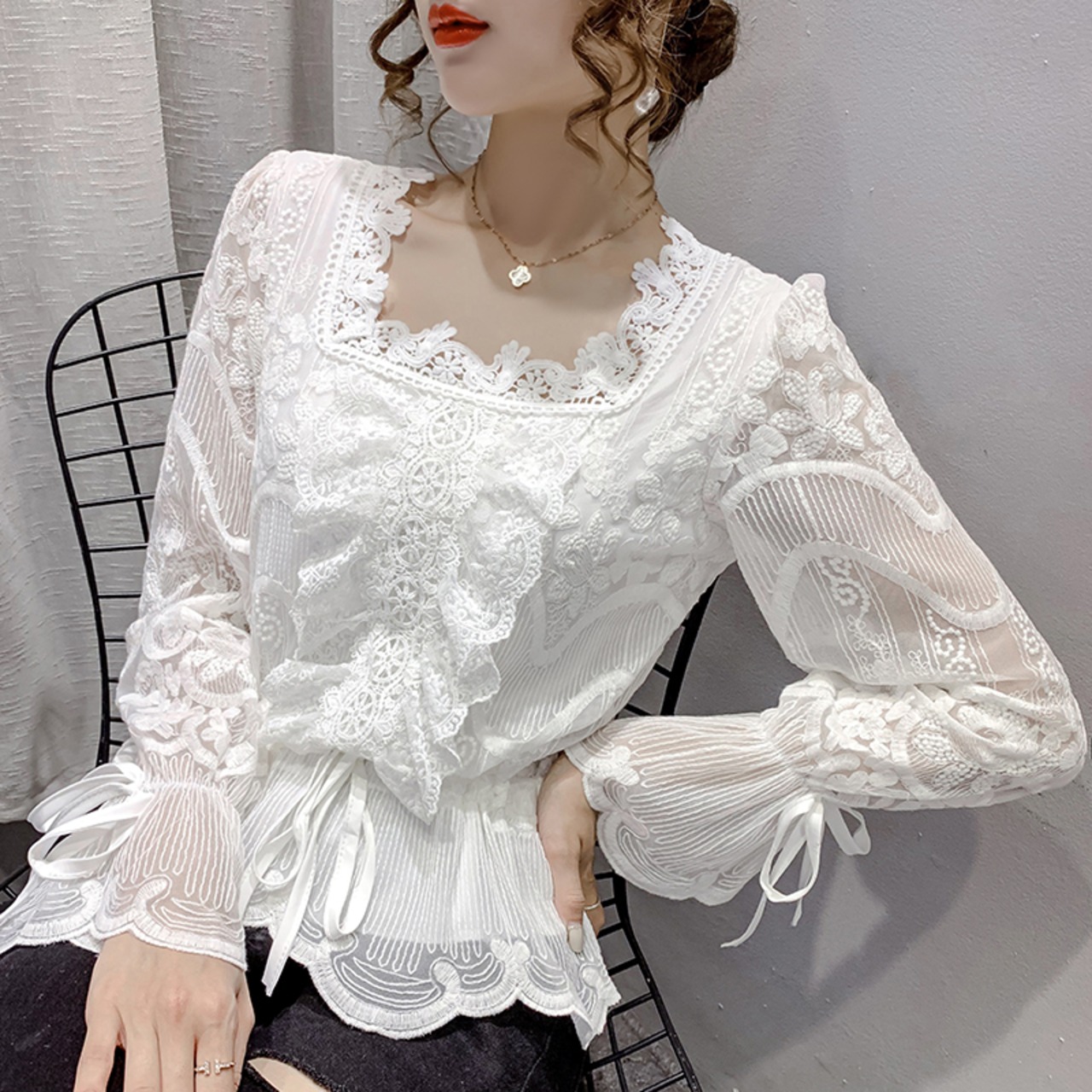 ブラウス レース スクエアカラー クロッシェレース トップス レース きれいめ 清楚 大人可愛い ママコーデ デート お出かけ MH2696