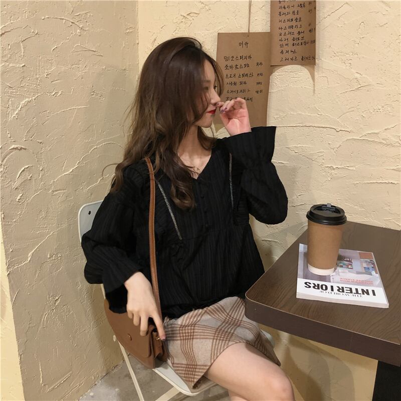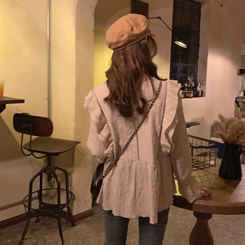 ブラウス トップス Vネック トランペットスリーブ レトロ 春 大人可愛い ママコーデ 通勤 デート お出かけ MH2706