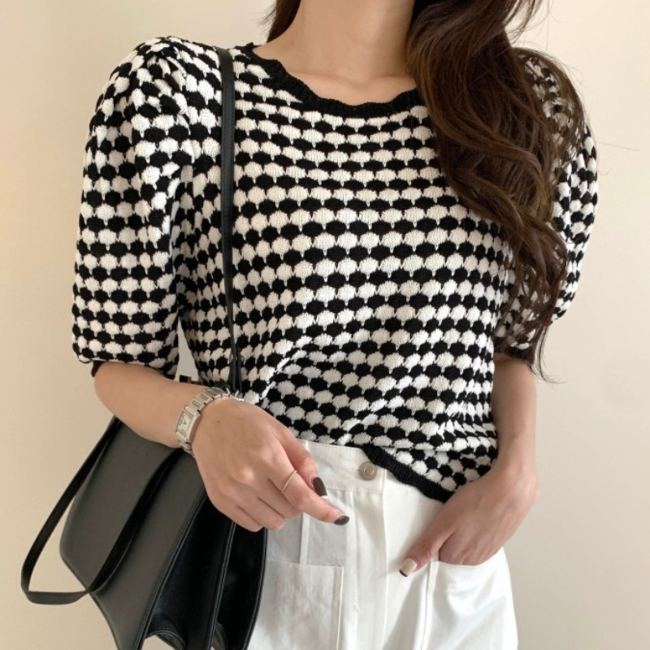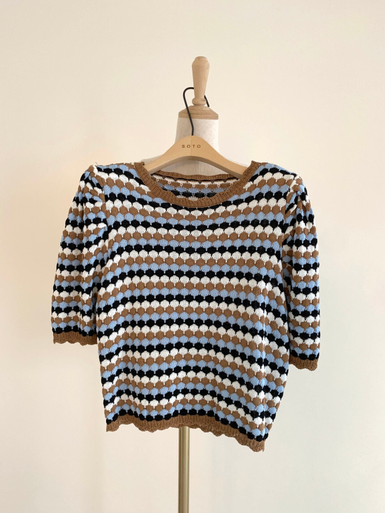 ニット トップス ラウンドネック 半袖 春 大人可愛い ママコーデ 通勤 オフィス デート お出かけ MH2708