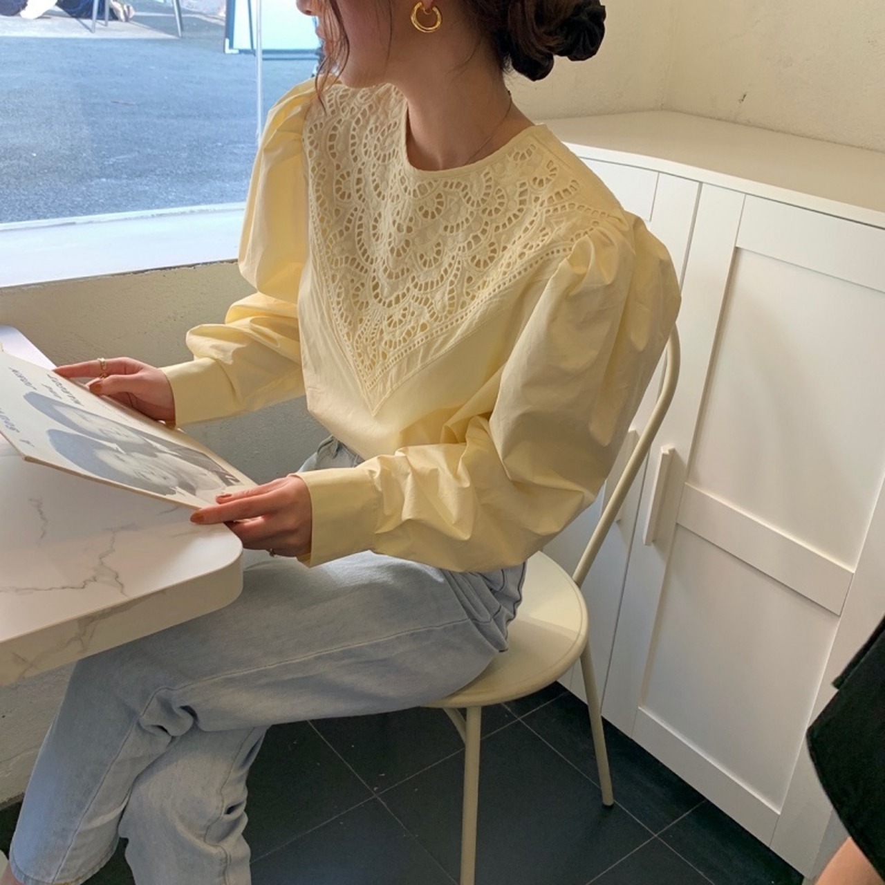 ブラウス パフスリーブ トップス パンチングレース きれいめ 通勤 OL オフィス ママコーデ デート お出かけ MH2728