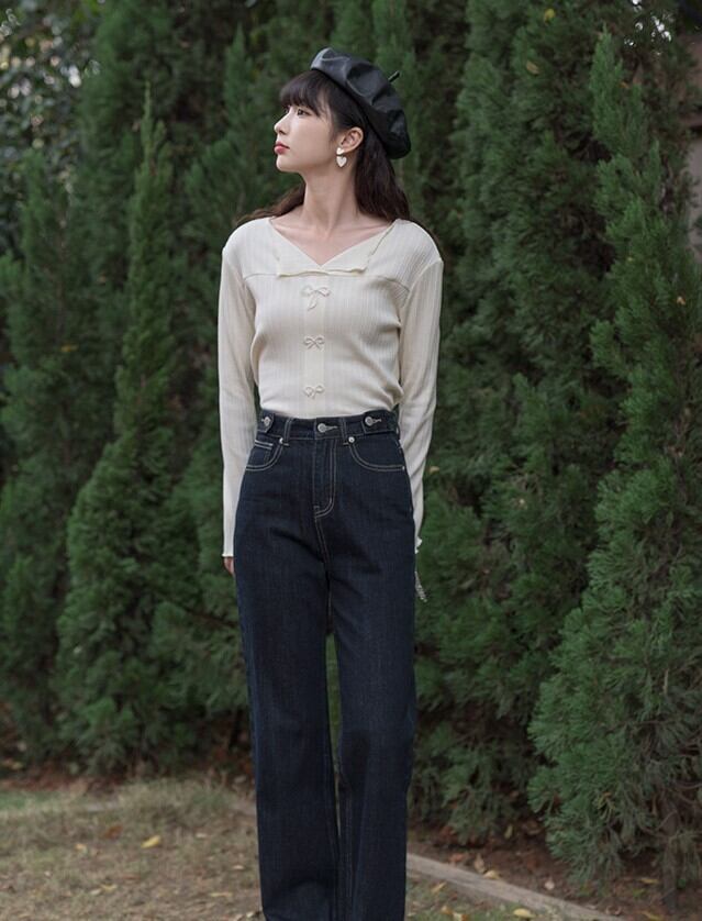 春ニットです。リボンが可愛い!