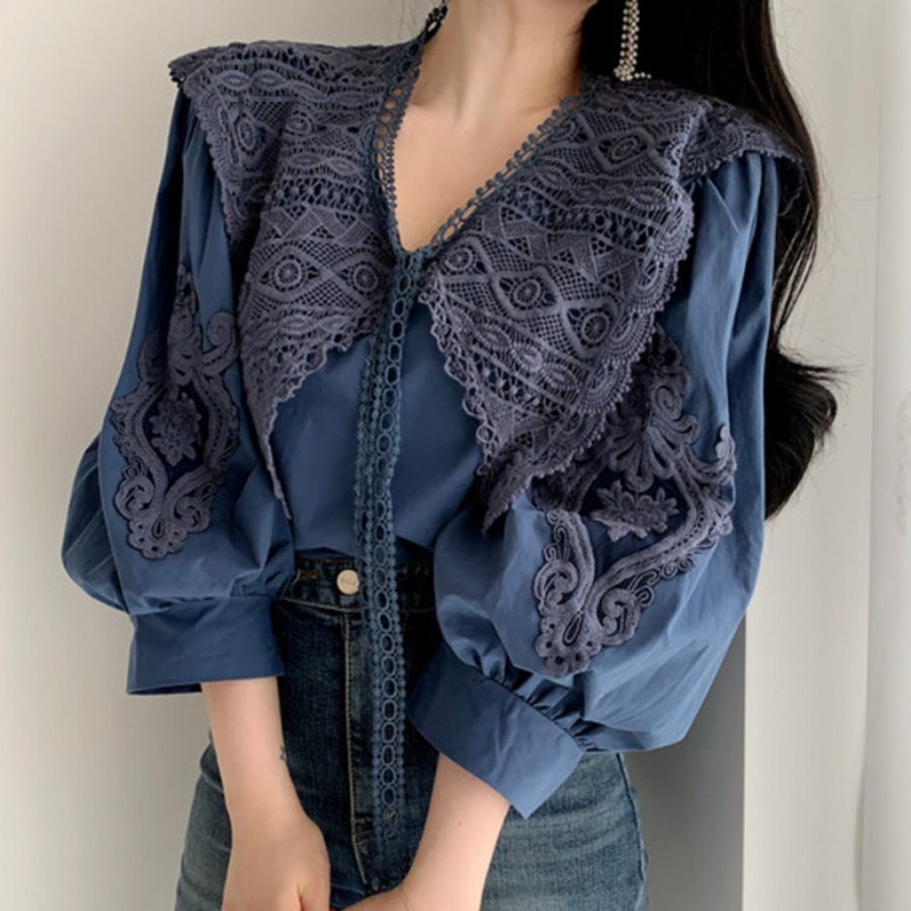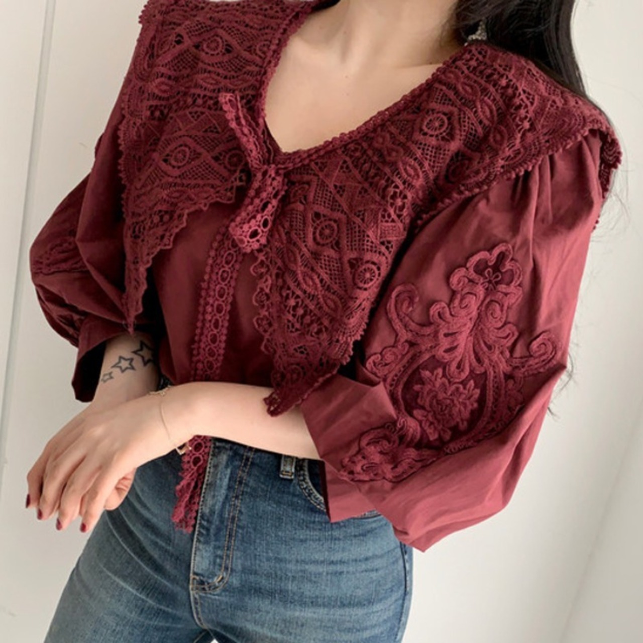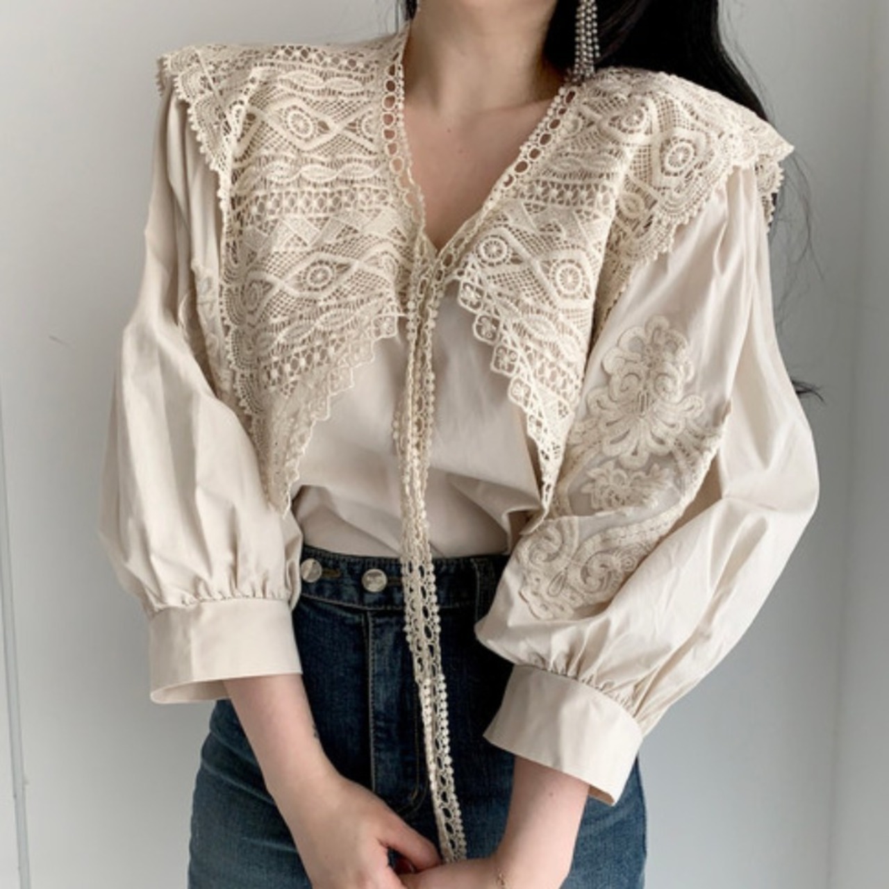 ブラウス トップス レディース レース ランタンスリーブ レトロ 大人可愛い 通勤 ママコーデ デート お出かけ MH2749