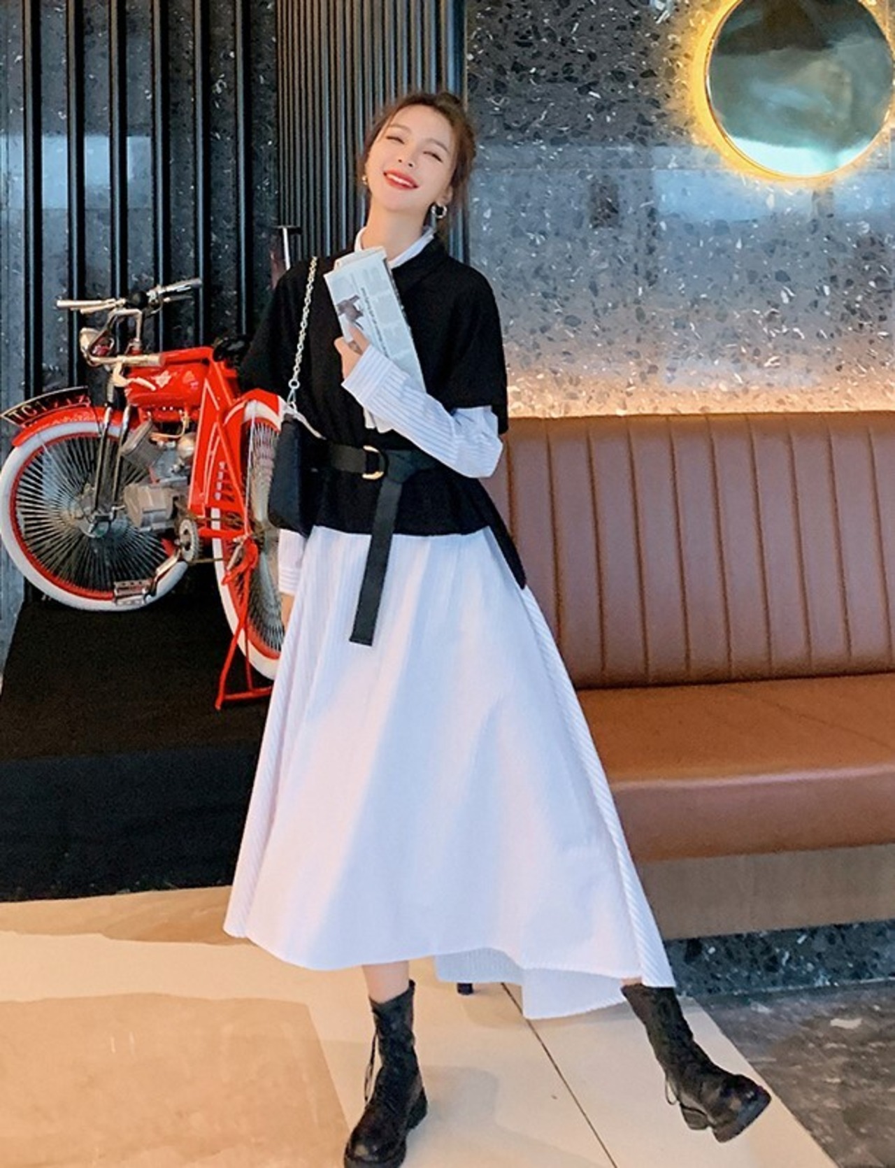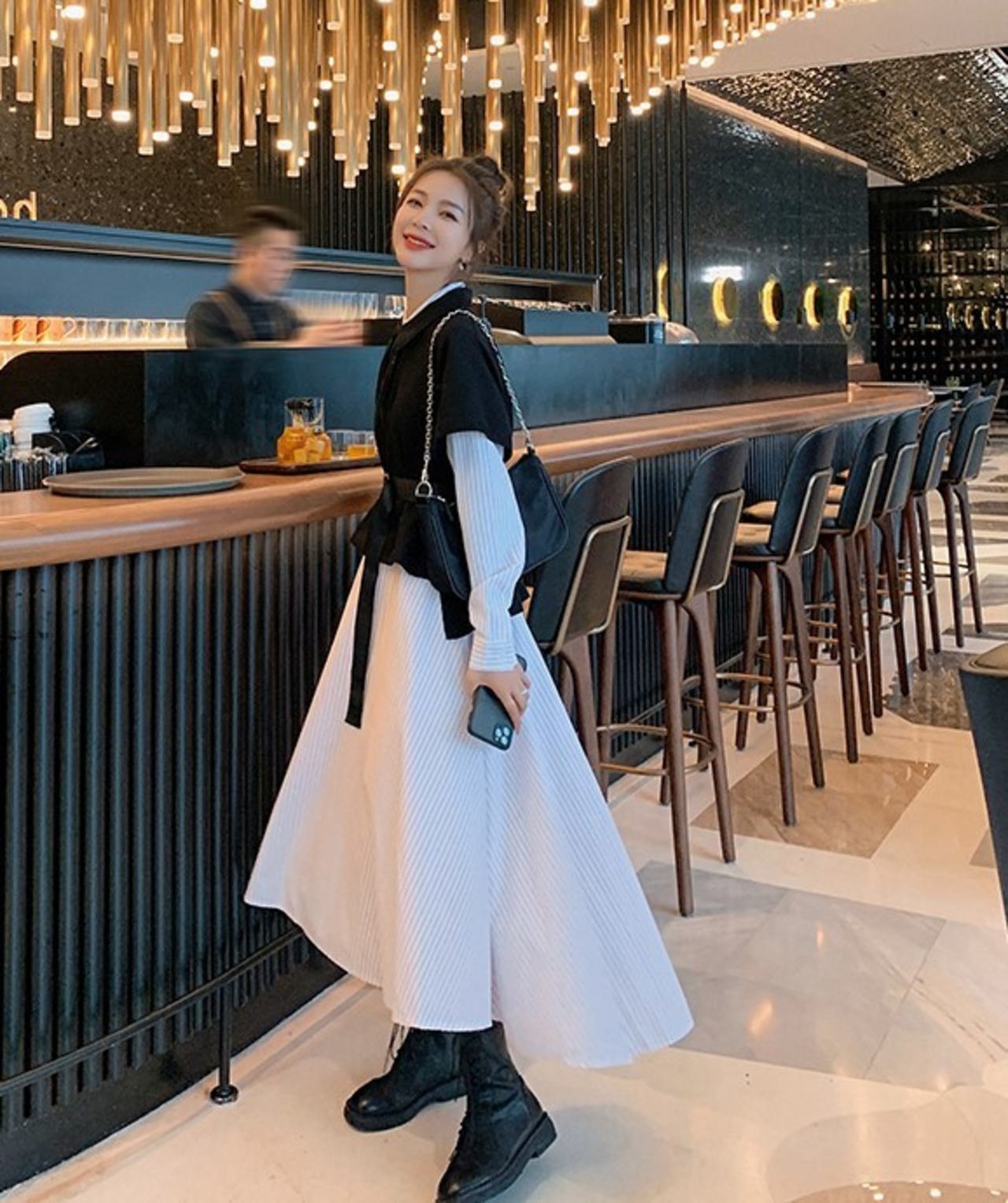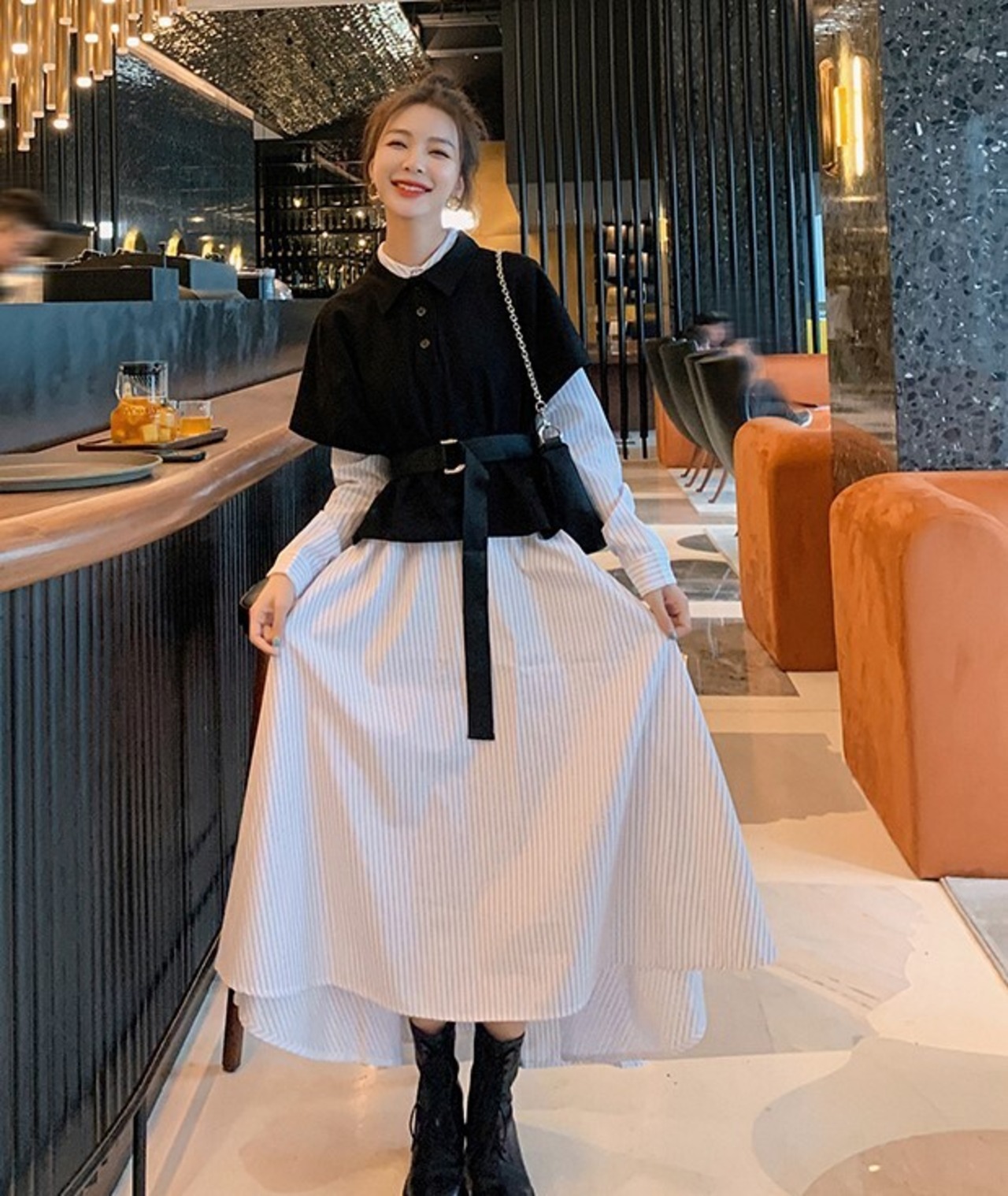 ワンピース 春ワンピ レディース ミモレ丈 アシンメトリー ドッキングワンピ ストライプ ボーダー ガーリー ab1933