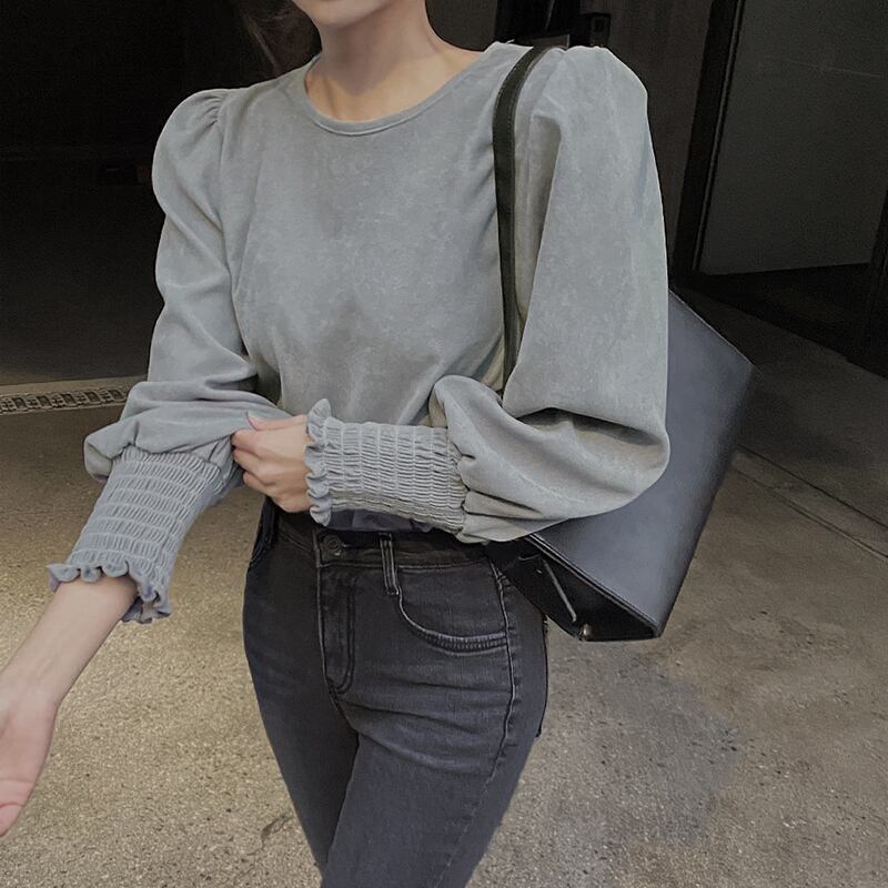 ブラウス シャツ トップス レディース 無地 ロングカフス レトロ フェミニン ガーリー ママコーデ デート お出かけ MH2752