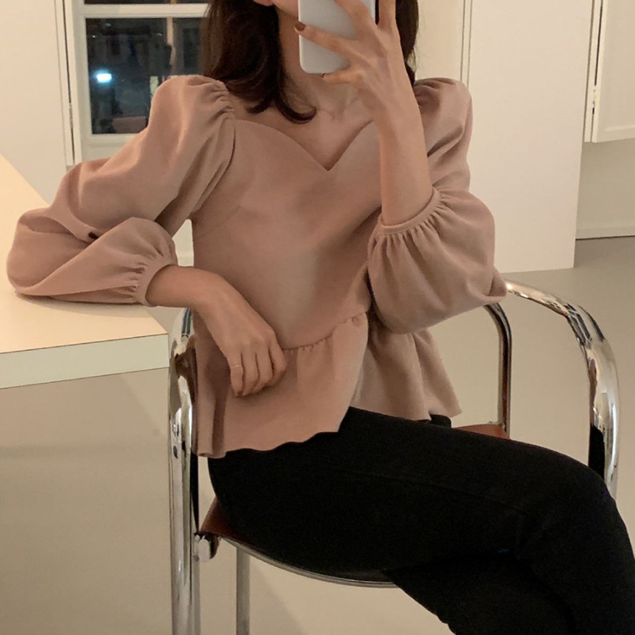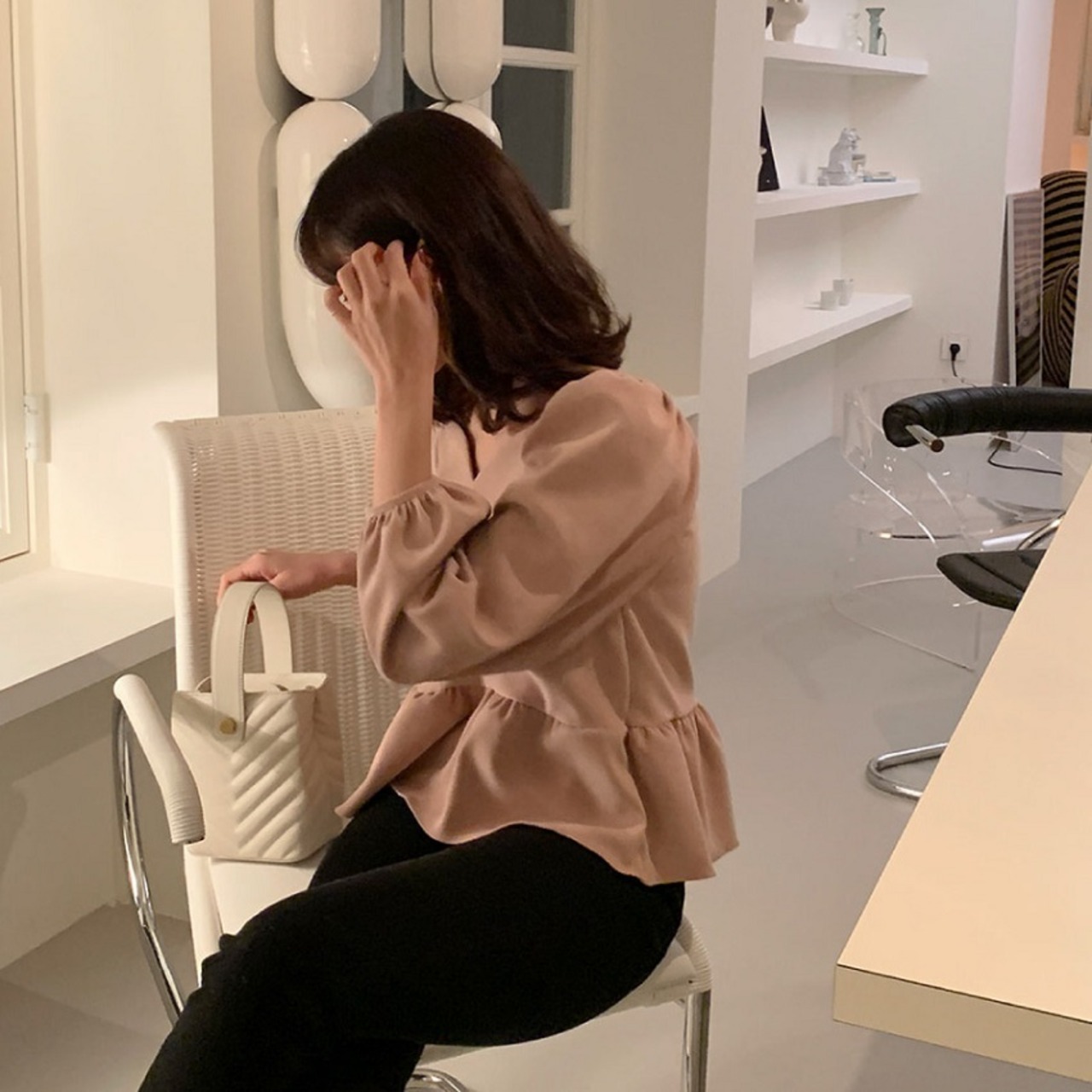 ブラウス シャツ ペプラム トップス レディース スイート♡ネック レトロ フェミニン ガーリー ママコーデ 通勤 デート お出かけ MH2754