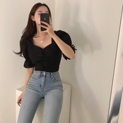 ブラウス トップス 半袖 レディース ペンタゴンネック バックレースアップ ガーリー ママコーデ デート お出かけ MH2762